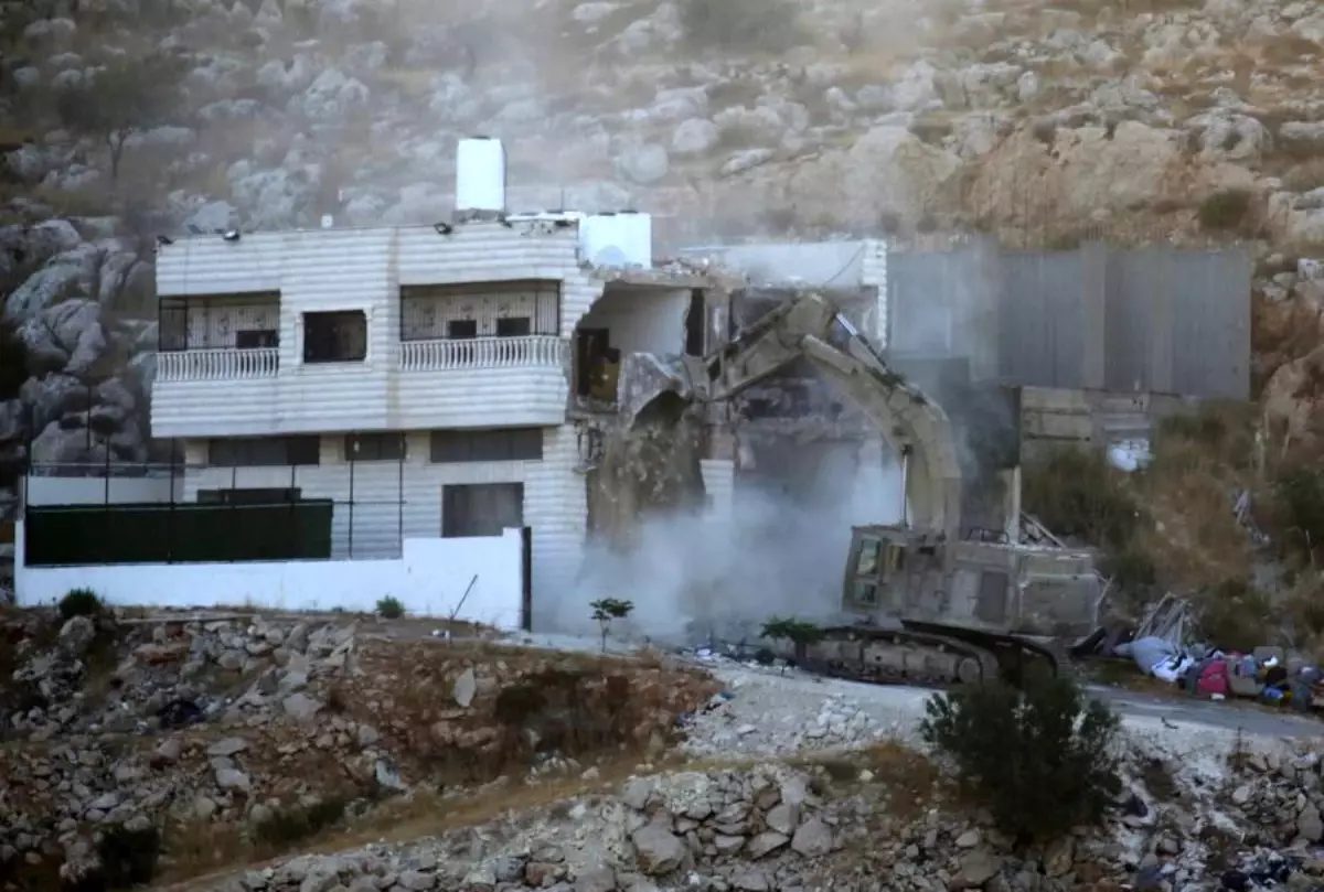 Nablus'un Ruceyb kasabasında İsrail ekskavatörü, Filistinlilere ait evleri yıktı.