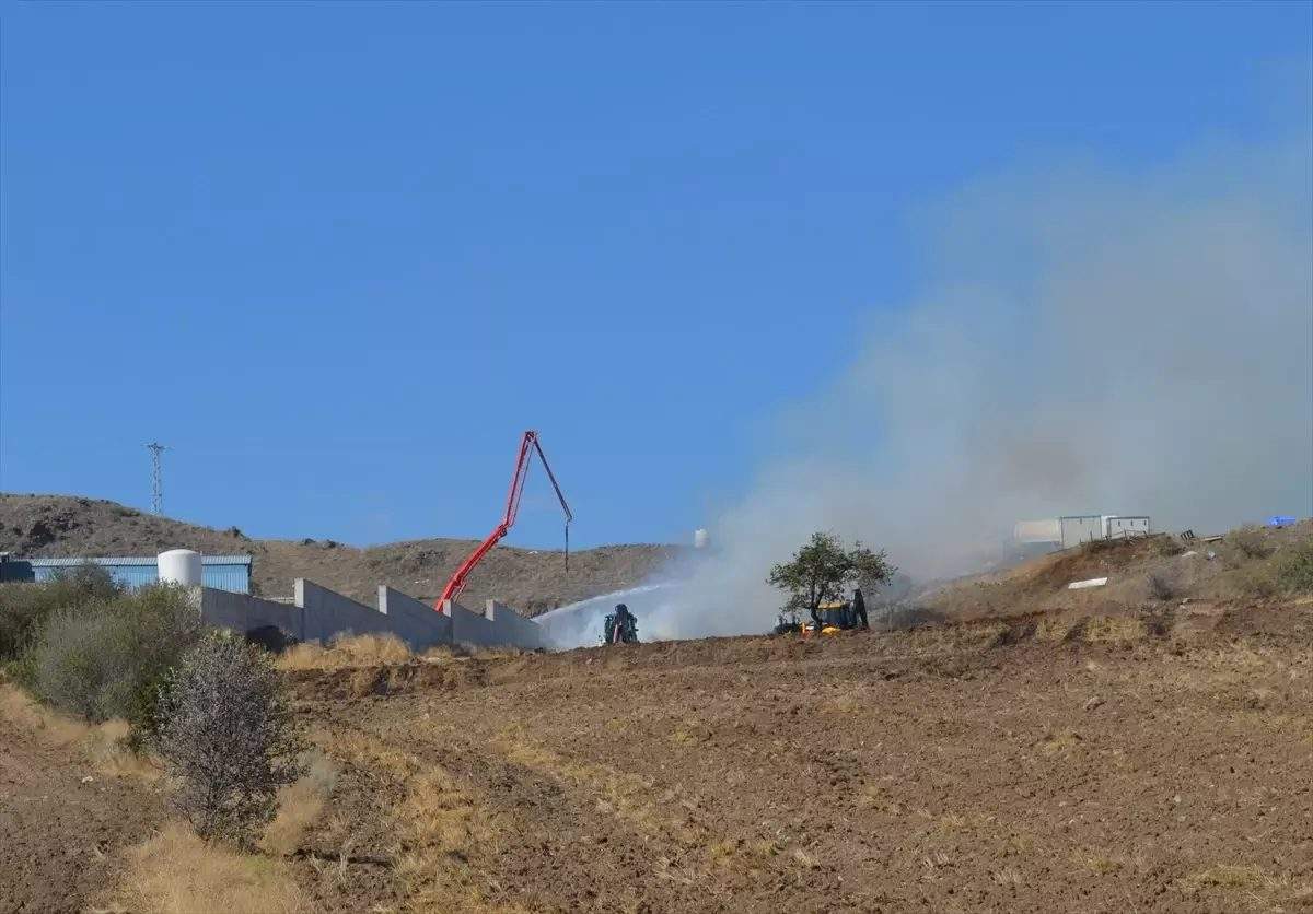 Çankırı-Şabanözü kara yolundaki çiftlikte istiflenen saman balyalarında henüz belirlenemeyen nedenle yangın çıktı.