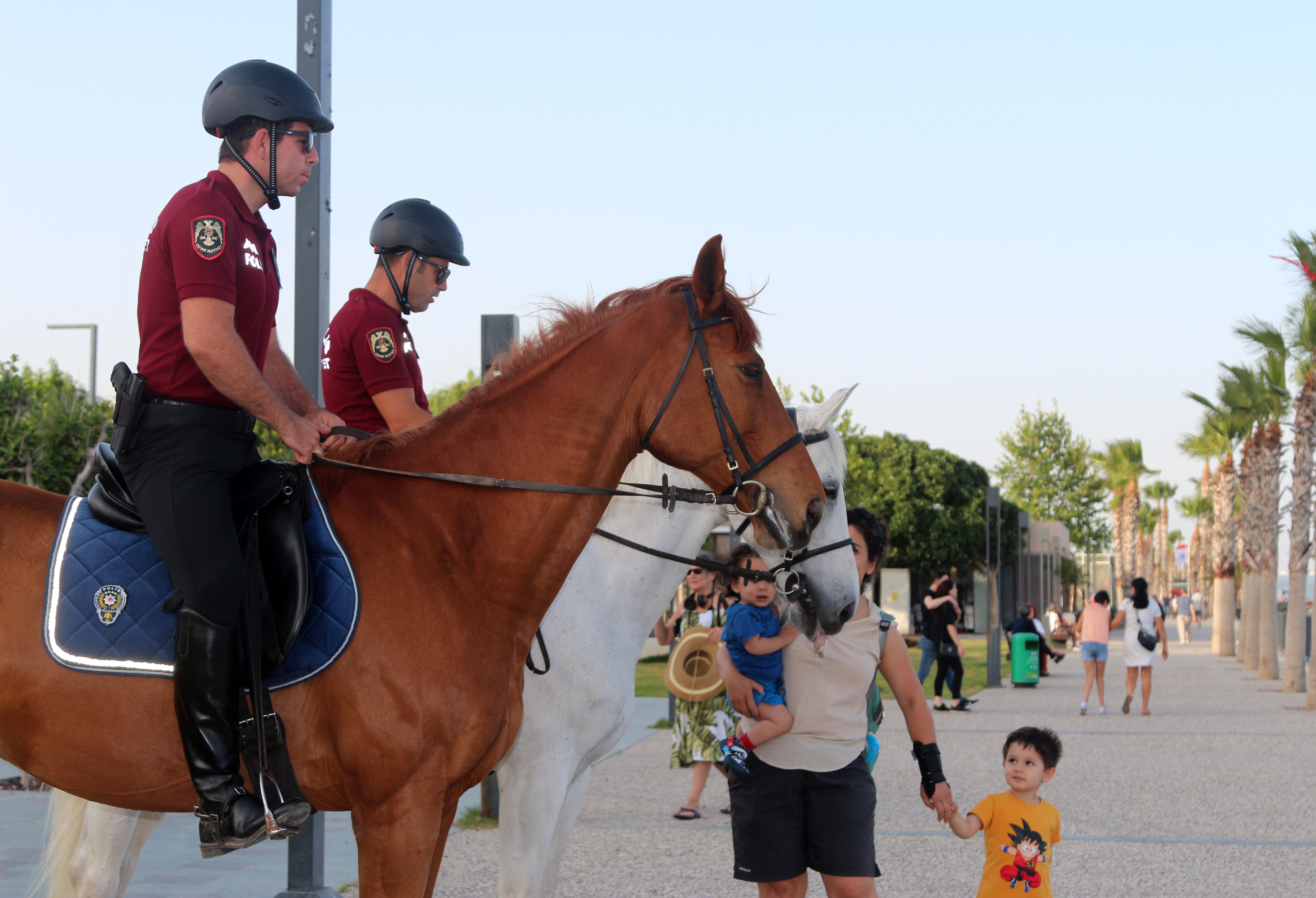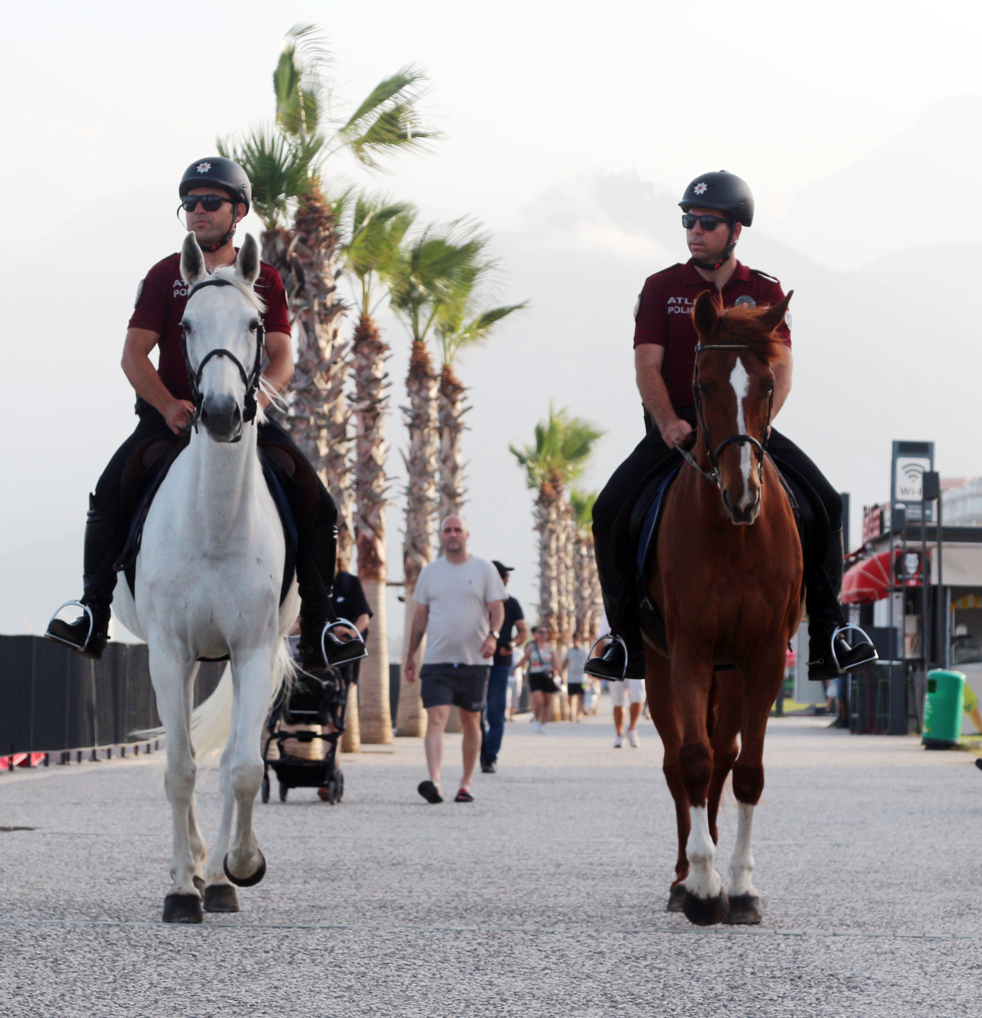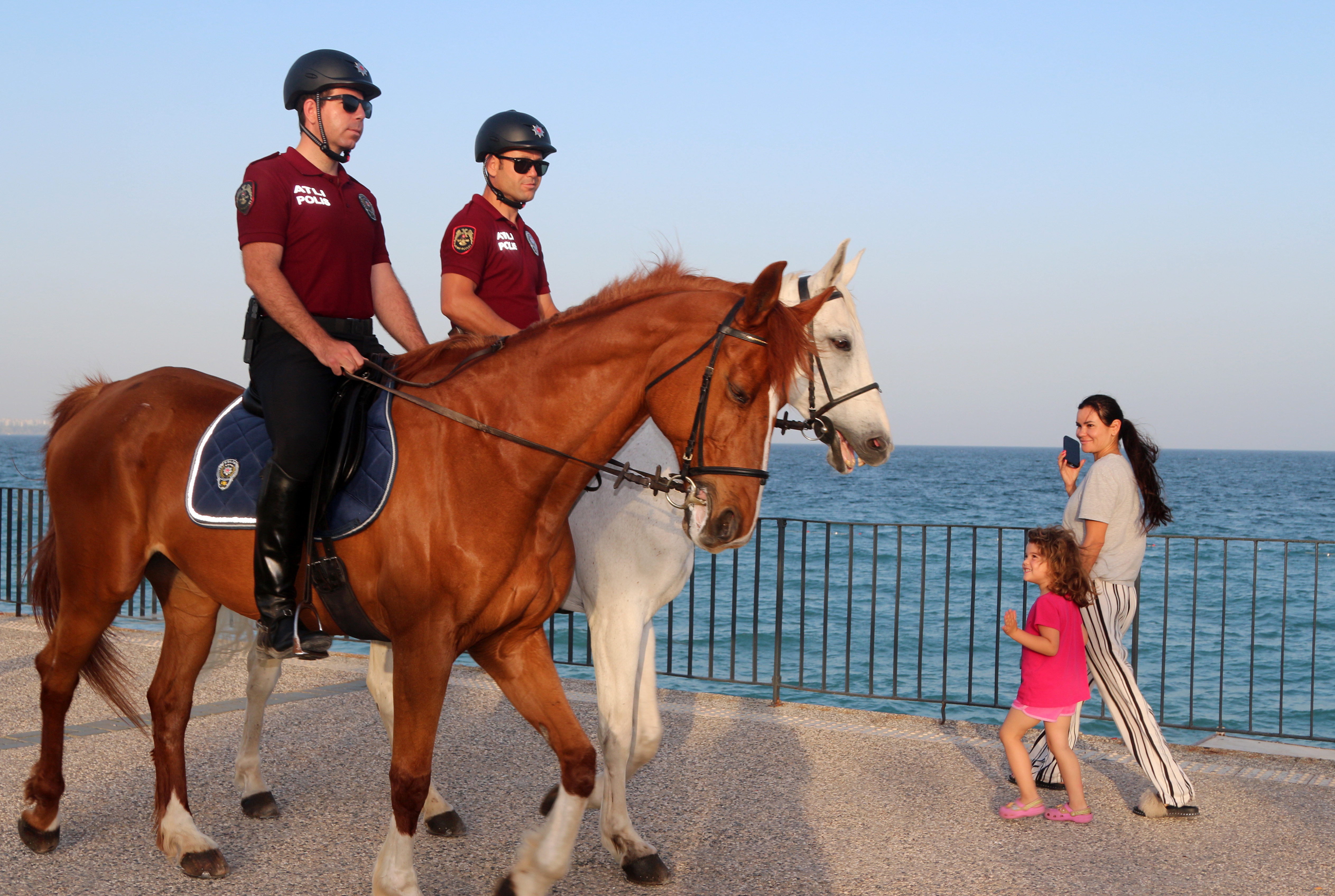 Özellikle Konyaaltı Sahili’nde görev yapıp, asayiş olaylarına müdahale eden atlı polisler, vatandaşların yoğun ilgisiyle karşılaşıyor. Sahilde devriye gezen atlar arasındaki anne- kız ‘Babilon’ ve ‘Filika’ isimli atlar, sahilde dikkatleri üzerlerine çekiyor.