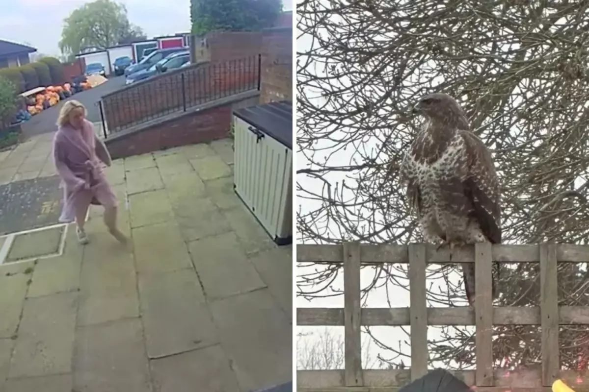 Video görüntülerinde şahin, kadının kafasına yaklaşık 2-3 santimetre mesafeden uçarak geçiyor. Hala sabahlığı içinde olan Louise Whittle, beklenmedik saldırı karşısında eğilip hayvan kaçarken koşarak uzaklaşıyor.