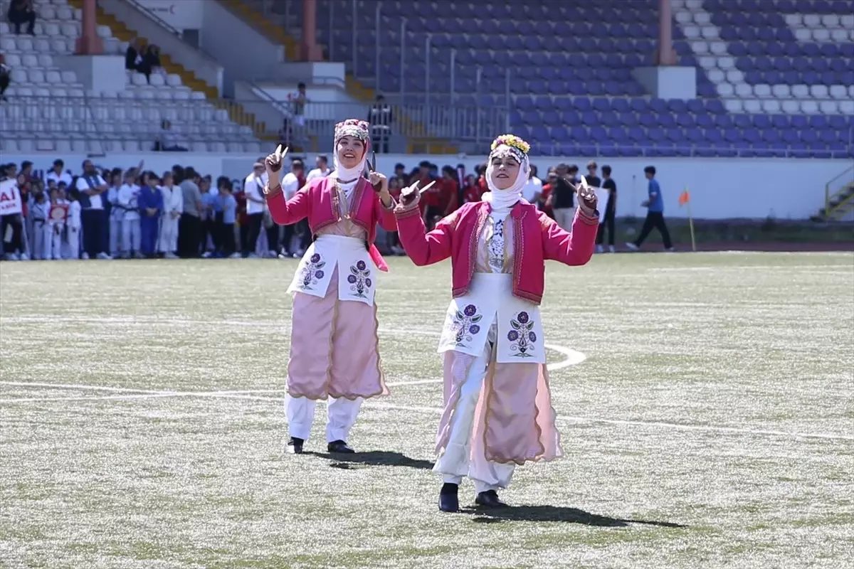 Bahçeşehir Spor Salonu’nda düzenlenen programda ise halk oyunları ve sportif gösteriler düzenlendi.