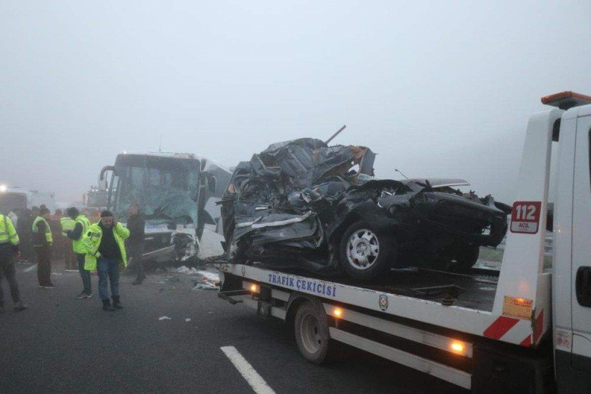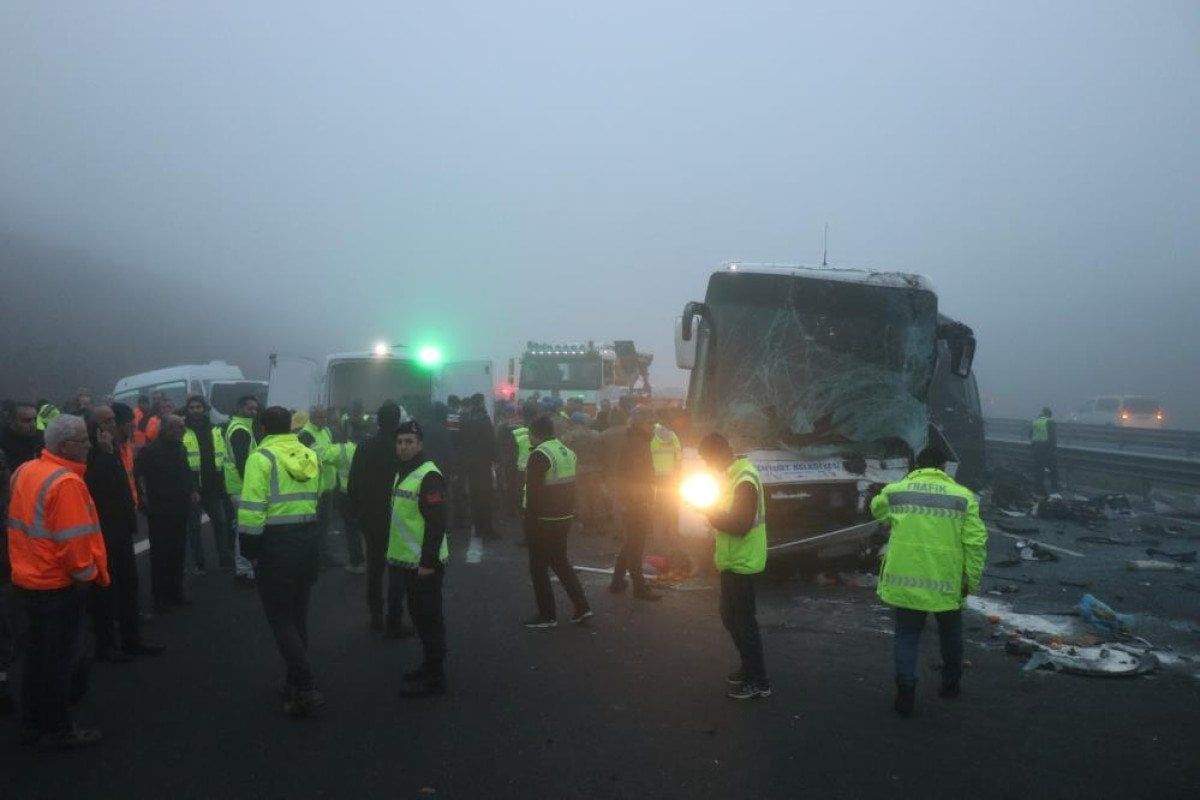 Yoğun sisin etkili olduğu bölgede 3’ü otobüs toplam 7 aracın karıştığı zincirleme kazada, 11 kişi hayatını kaybetti.