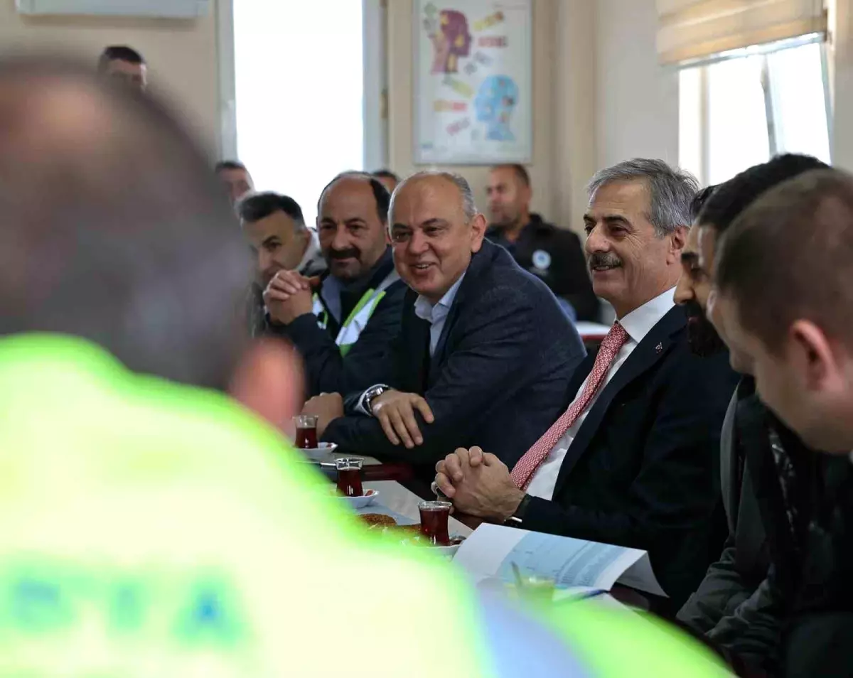 Sakarya Büyükşehir Belediye Başkanı Yusuf Alemdar, bugün mesaiye Büyükşehir Belediyesi Asfalt Şantiyesinde başladı. Sabahın erken saatlerinde şantiyeye gelen Başkan Alemdar’ı Genel Sekreter Yardımcısı Aslan Yılmaz, Yol Bakım ve Altyapı Koordinasyon Dairesi Başkanlığı’na (YOLBAK) bağlı müdürler, şefler ve şantiye çalışanları karşıladı. Çalışanlarla birlikte çay ve simit eşliğinde kahvaltı yapan Başkan Alemdar, ekiple asfalt sezonuyla ilgili çalışmaları görüştü, belirlenen hedef üzerine istişare yaptı. Ziyaretinde asfalt sezonunu resmen başlattıklarını belirten Başkan Alemdar, şehir genelinde bu yıl kapsamlı bir asfalt çalışması yapılacağının müjdesini verdi.