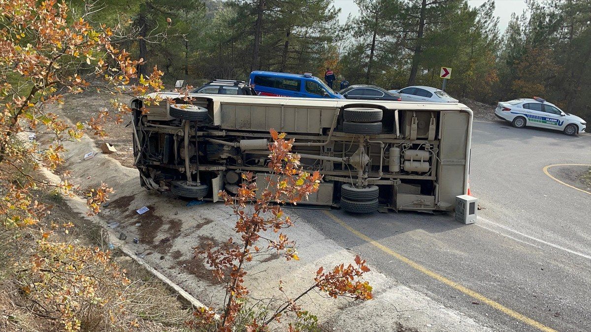 Ambulanslarla çevredeki hastanelere kaldırılan yaralıların hayati tehlikelerinin bulunmadığı bildirildi Kontrolden çıkan midibüsün devrilmesi sonrası