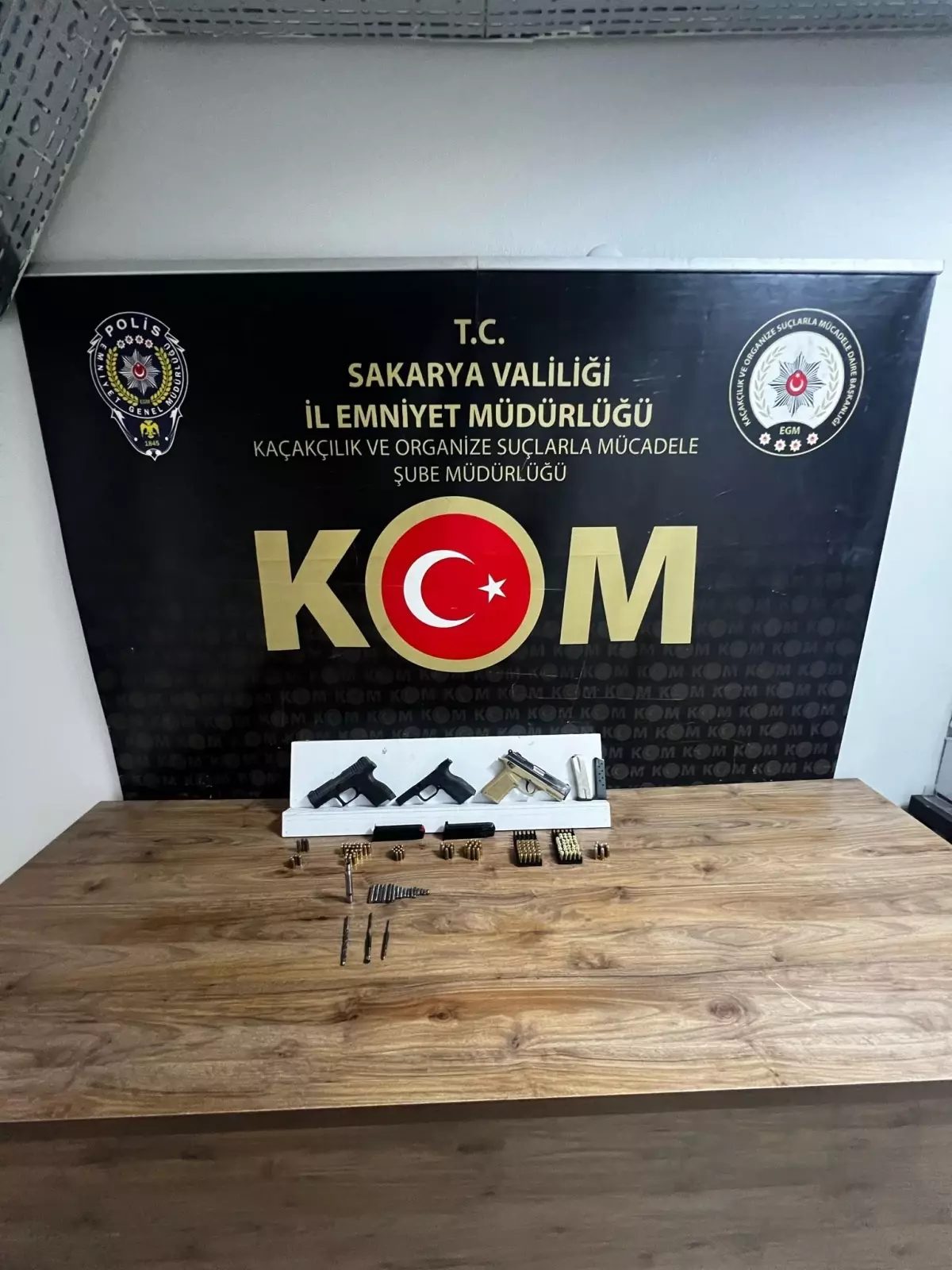 Sakarya Cumhuriyet Başsavcılığı koordinesinde Sakarya Emniyet Müdürlüğü Kaçakçılık ve Organize Suçlarla Mücadele (KOM) Şube Müdürlüğü ekipleri, silah kaçakçılığına yönelik 2 farklı operasyon düzenlendi. Operasyonlarda 4 şüpheli yakalanarak, gözaltına alındı. Ekiplerin Akyazı ilçesindeki ikametleri ve Arifiye ilçesinde bulunan bir araçta yaptığı aramalarda, 5 ruhsatsız tabanca, 6 tabanca şarjörü, farklı çaplarda 125 mermi ile tabanca tamirinde kullanılan 20 çeşitli araç ve gereç ele geçirildi. Şüphelilerin işlemleri sürüyor.