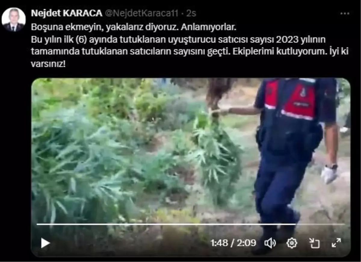 İl Jandarma Komutanı Nejdet Karaca’nın yaptığı paylaşımda, “Boşuna ekmeyin, yakalarız diyoruz. Anlamıyorlar. Bu yılın ilk 6 ayında tutuklanan uyuşturucu satıcısı sayısı 2023 yılının tamamında tutuklanan satıcıların sayısını geçti. Ekiplerimi kutluyorum. İyi ki varsınız” ifadeleri yer aldı. – SAKARYA
