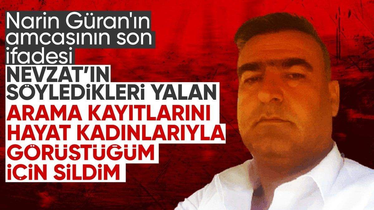“Nevzat Bahtiyar’ın aleyhime söylemiş olduğu tüm hususlar yalandır. Kesinlikle olay günü ben Nevzat’a seslenmedim. Ben Nevzat Bahtiyar’ı sormuş olduğunuz 15:00-16:00 saatleri arasında kesinlikle görmedim. Sadece saat 20:00’dan sonra köyün içine evime doğru ilerlerken bir kalabalığın içerisinde gördüm. Bunun haricinde kesinlikle söylemiş olduğu olay gerçekleşmemiştir. Bu beyanlarını kabul etmiyorum. Yeğenim olan Narin Güran’ı öldürerek cesedini arabama yükledikten sonra kendisine teslim etmedim. Ben Nevzat’a ‘Arif’in kızını öldürmüşüm’ demedim. Dolayısıyla aleyhime olan beyanlarını kabul etmiyorum.”