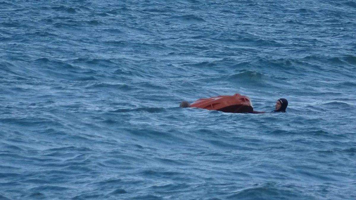 Boğulma tehlikesi geçiren dört kişinin kurtarılmasının ardından, Deniz Limanı Şube Müdürlüğü Sualtı Grup Amirliği’ne bağlı kurbağa adamlar, alabora olan botu deniz polisi teknesine bağlayarak kıyıya çektiler.