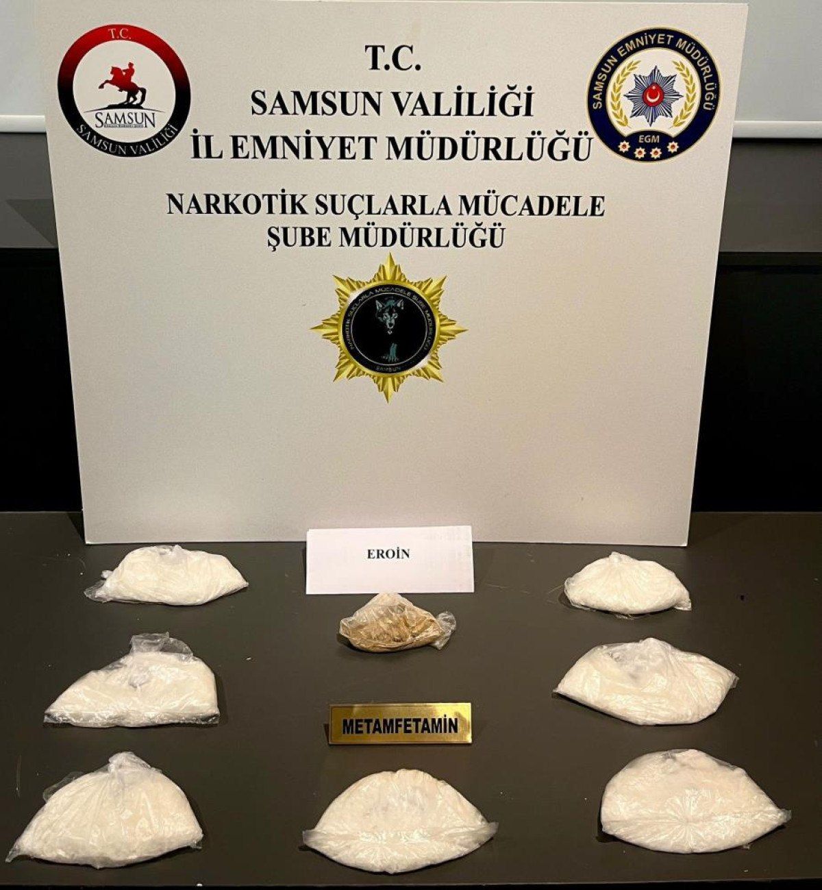 Samsun’da bir araçtan eroin ve metamfetamin çıktı