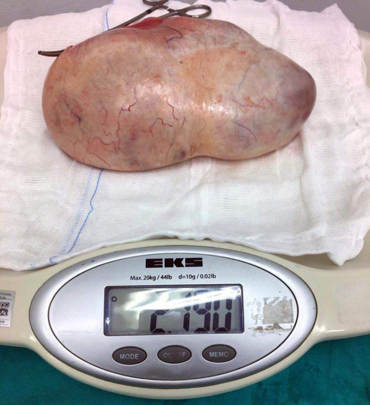 1 saat süren ameliyat sonunda 2 kilo 160 gram ağırlığındaki kitle, hamile kadının karnından çıkartılırken, 8 haftalık cenin ve anne de hayata tutunmuş oldu.