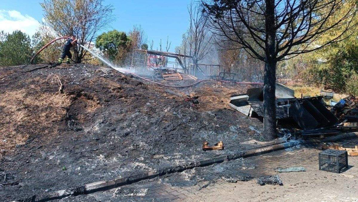 Yangında, Yüksel Gümüş isimli şahsa ait olan çok sayıda plastik kasa ve bir transit minibüse ait tente kullanılmaz hale geldi.