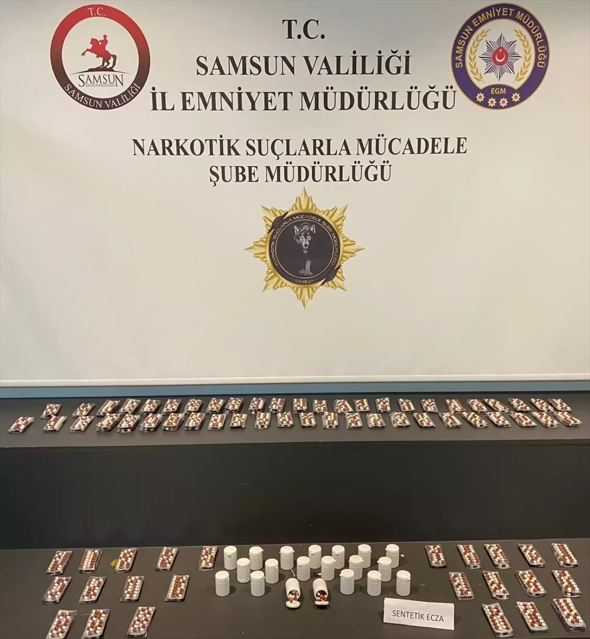Canik ilçesinde şüpheli İ.P’nin (23) ikametindeki 1254 sentetik eczaya da el konuldu.