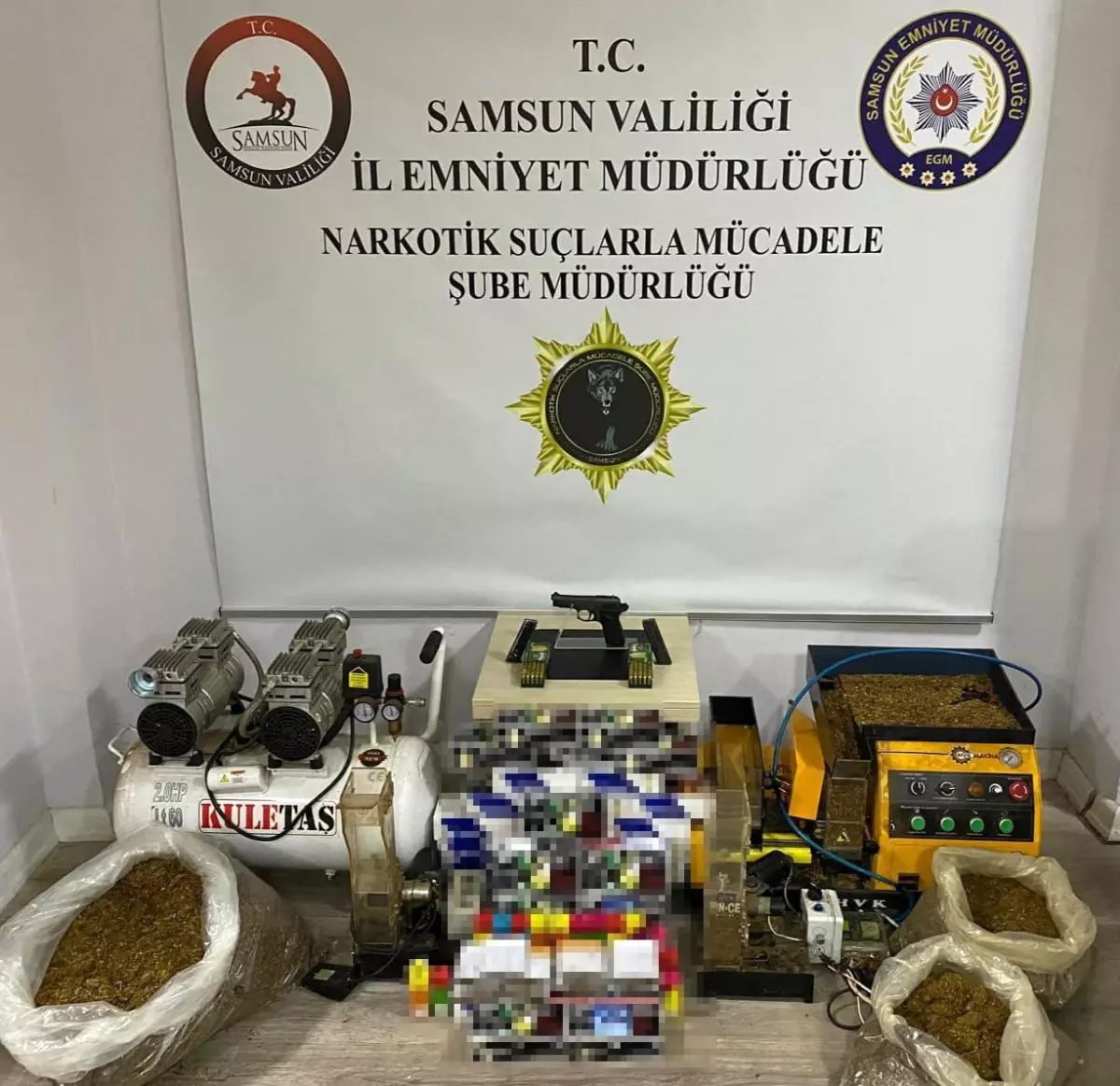 Edinilen bilgiye göre, Samsun Emniyet Müdürlüğü Narkotik Suçlarla Mücadele Şube Müdürlüğü ekipleri, Bafra ilçesinde İ.K. (40), Z.Ç. (50) ve K.A. (46) isimli şahısların iş yeri ve ikamet adreslerine operasyon düzenledi. Yapılan aramalarda 4 gram esrar, 27 adet sentetik ecza, 1 adet ruhsatsız tabanca, 95 adet fişek, 16 kilo 400 gram kıyılmış tütün, 670 adet sigara, 1 adet elektrikli ve kompresörlü tütün sarma makinesi, 2 adet elektrikli tütün sarma makinesi, 6800 adet bandrolsüz makaron ve 14 paket elektronik sigara likidi ele geçirildi. Olayla ilgili İ.K., Z.Ç. ve K.A. gözaltına alındı. Soruşturma devam ediyor. – SAMSUN