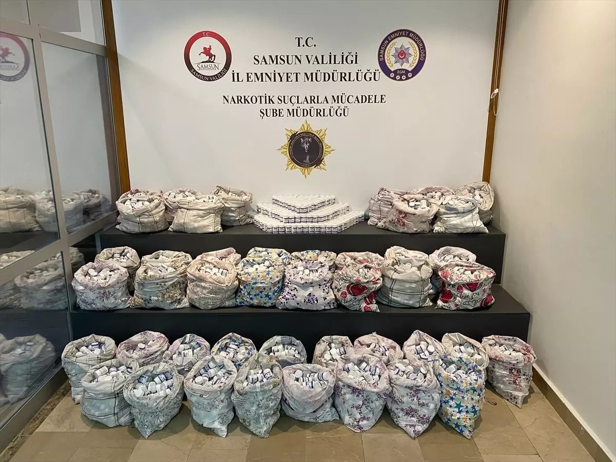 Samsun Atakum'da yapılan operasyonda yastık kılıfında 265 bin sentetik ecza bulundu, 3 kişi gözaltında.