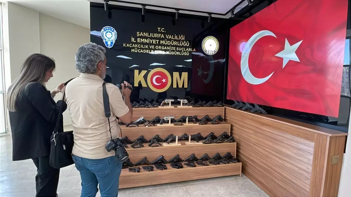 ŞANLIURFA’da durdurulan otomobilde yapılan aramada ruhsatsız 65 tabanca, 79 şarjör ve 50 mermi ele geçirildi. Gözaltına alınan 2 şüpheli, tutuklandı.