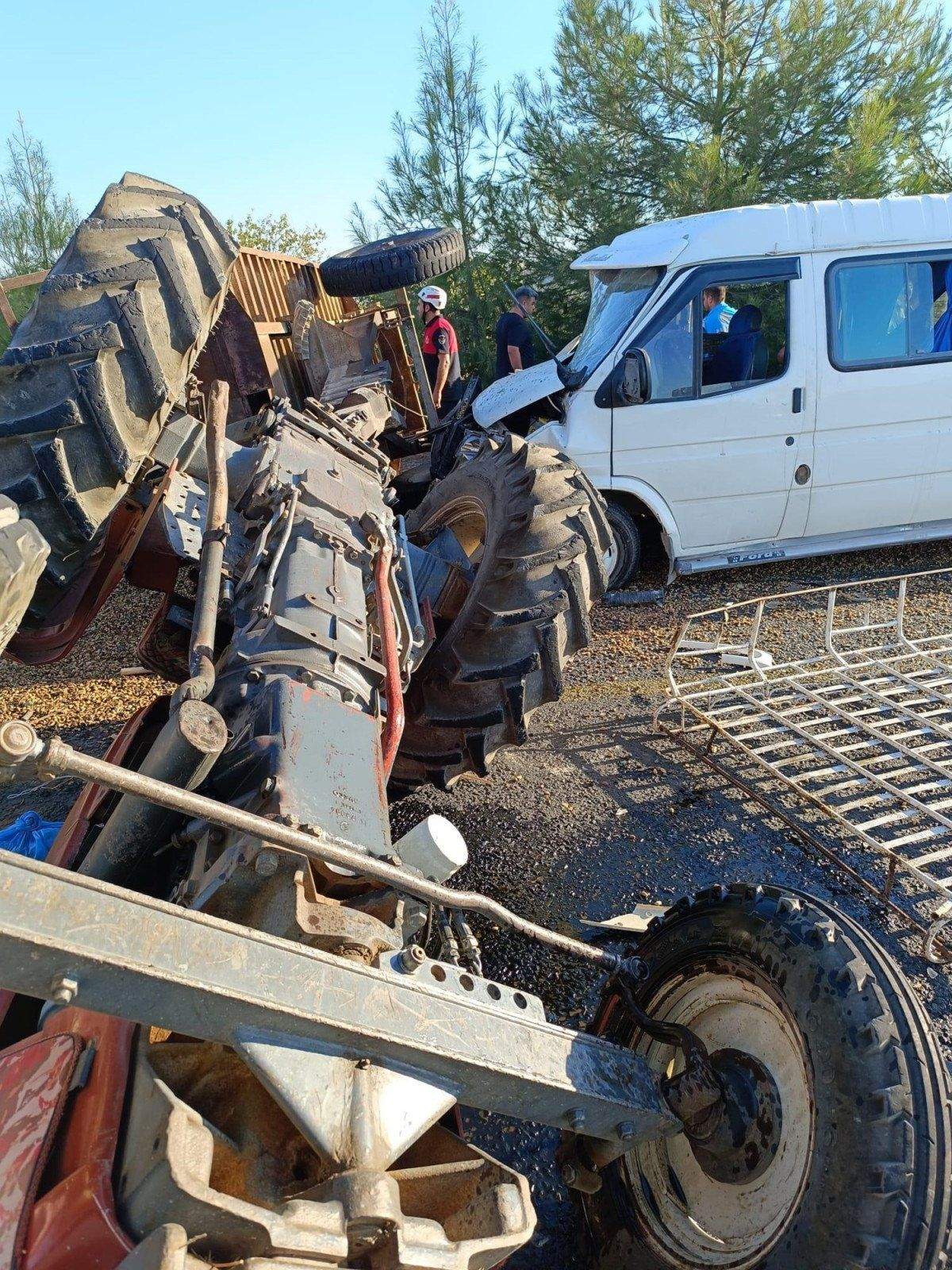 Hızlanan minibüs, aynı yönde seyreden Osman Baz yönetimindeki fıstık yüklü traktöre arkadan çarptı.
