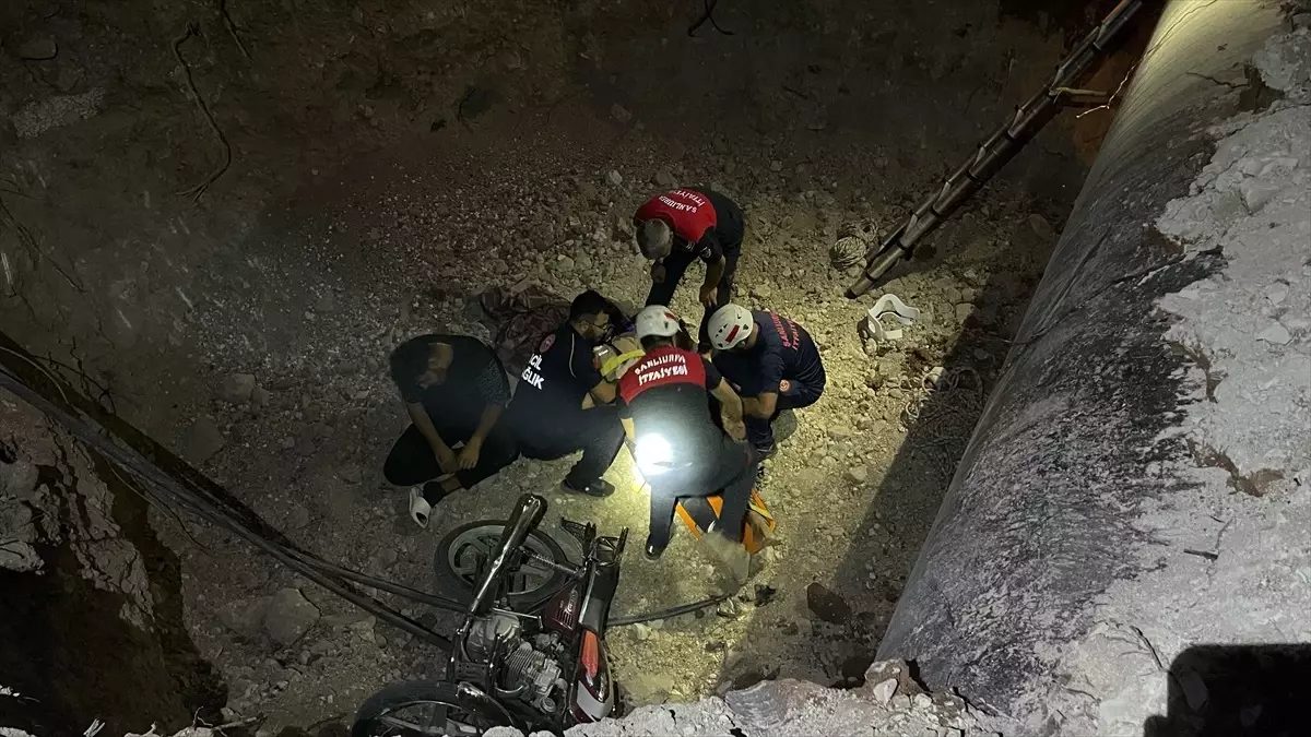 Şanlıurfa’nın Haliliye ilçesinde motosikletle yaklaşık 10 metre derinliğindeki çukura düşen 2 kişi yaralandı.