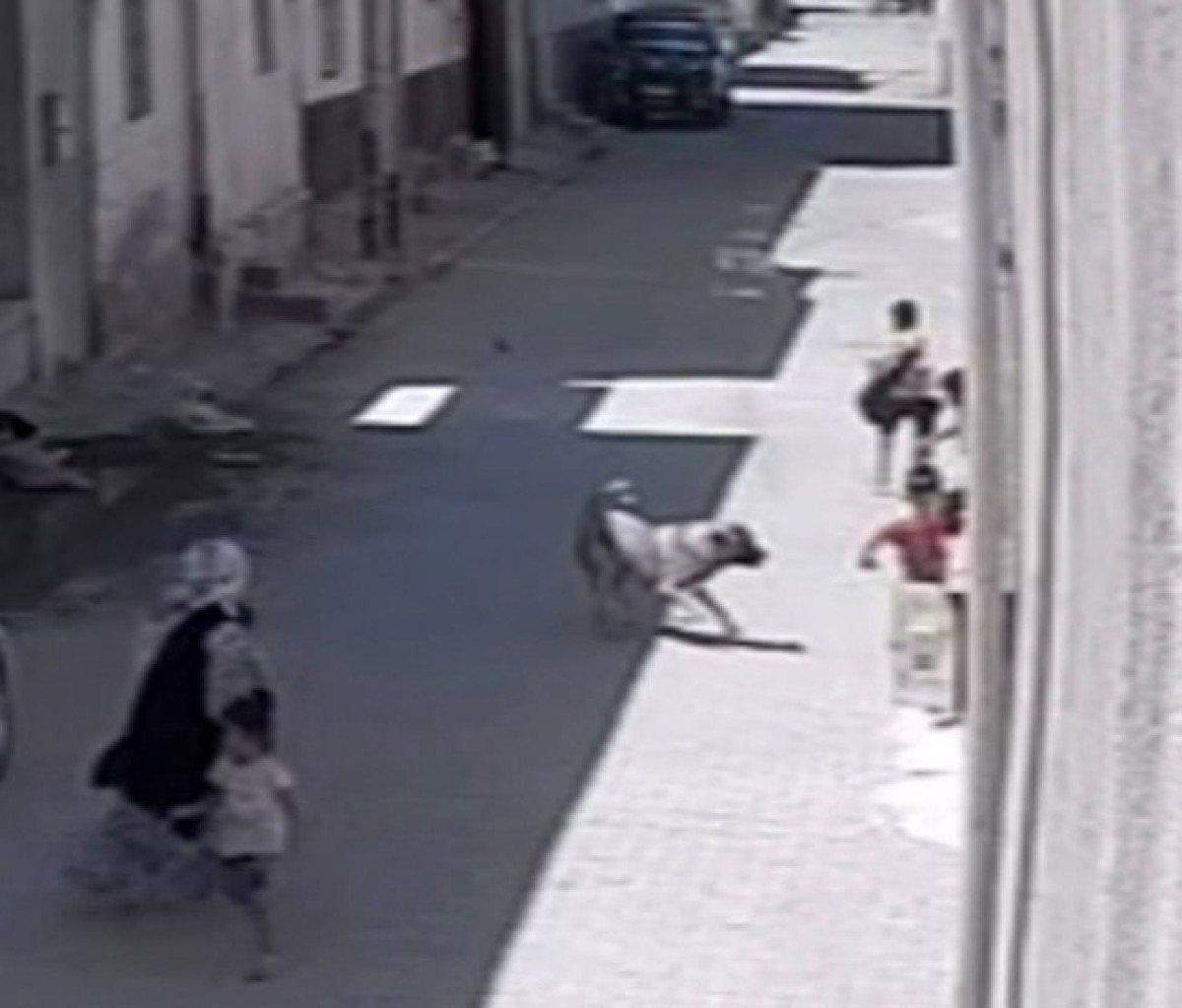 Köpeklerin saldırısı bununla da bitmedi. Yoldan geçmeye çalışan iki küçük çocuk, köpekleri görünce temkinli davranarak dikkatli bir şekilde geçmek istedi.