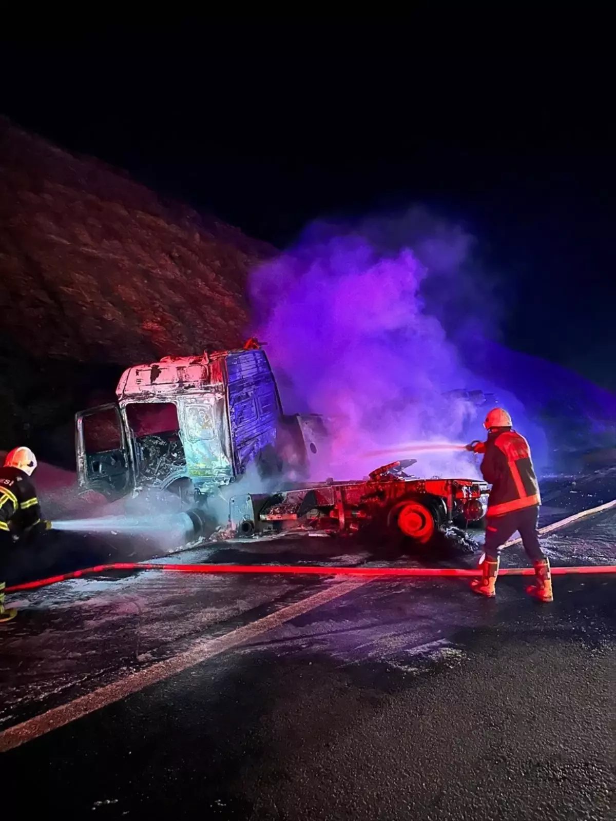 Kazada sürücü kendi imkanlarıyla araçtan çıkarken, akaryakıt yüklü tanker ise alev aldı.