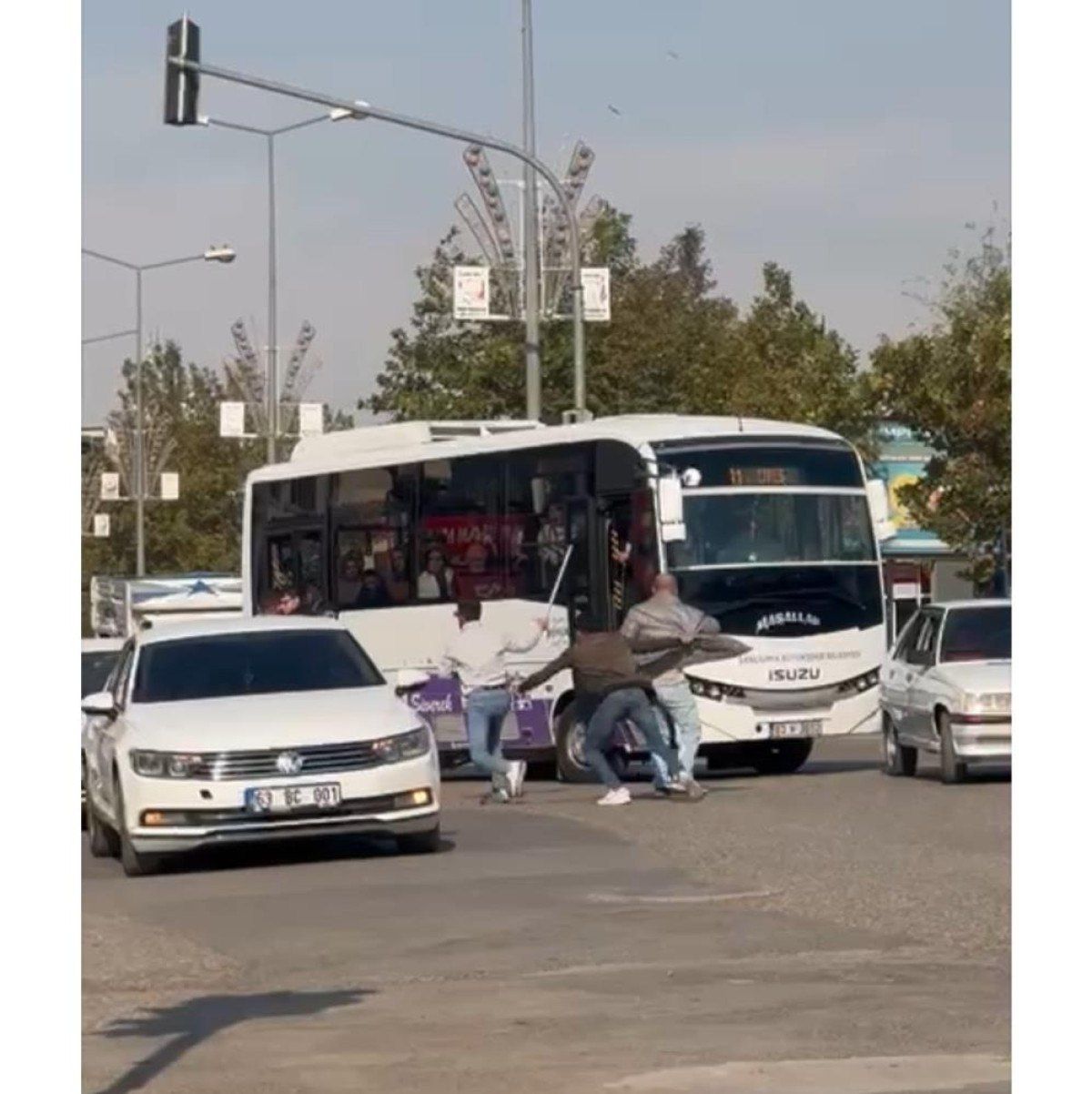 Şanlıurfa’nın Siverek ilçesinde bir minibüs şoförü, durağa yanaşmaya çalışırken park halindeki bir araç ve içerisindekileri yer açmaları için uyardı.