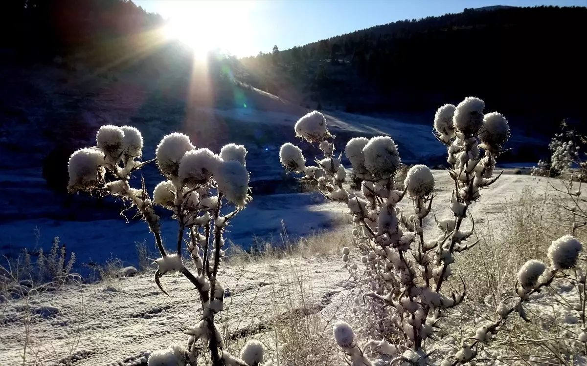 İlçede hava sıcaklığının sıfırın altında 6 dereceye düşmesiyle araç camları buz, bitkiler ve bahçe çiçekleri kırağı tuttu.