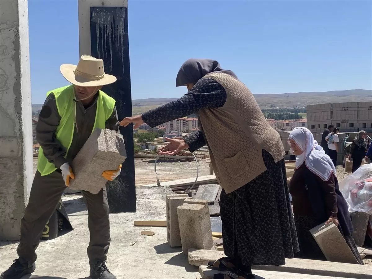 Sivas’ın Şarkışla ilçesinde hayırseverlerin desteğiyle yapılan caminin inşaatında mahallenin erkeklerinin yanı sıra kadınlar da gönüllü olarak görev alıyor.