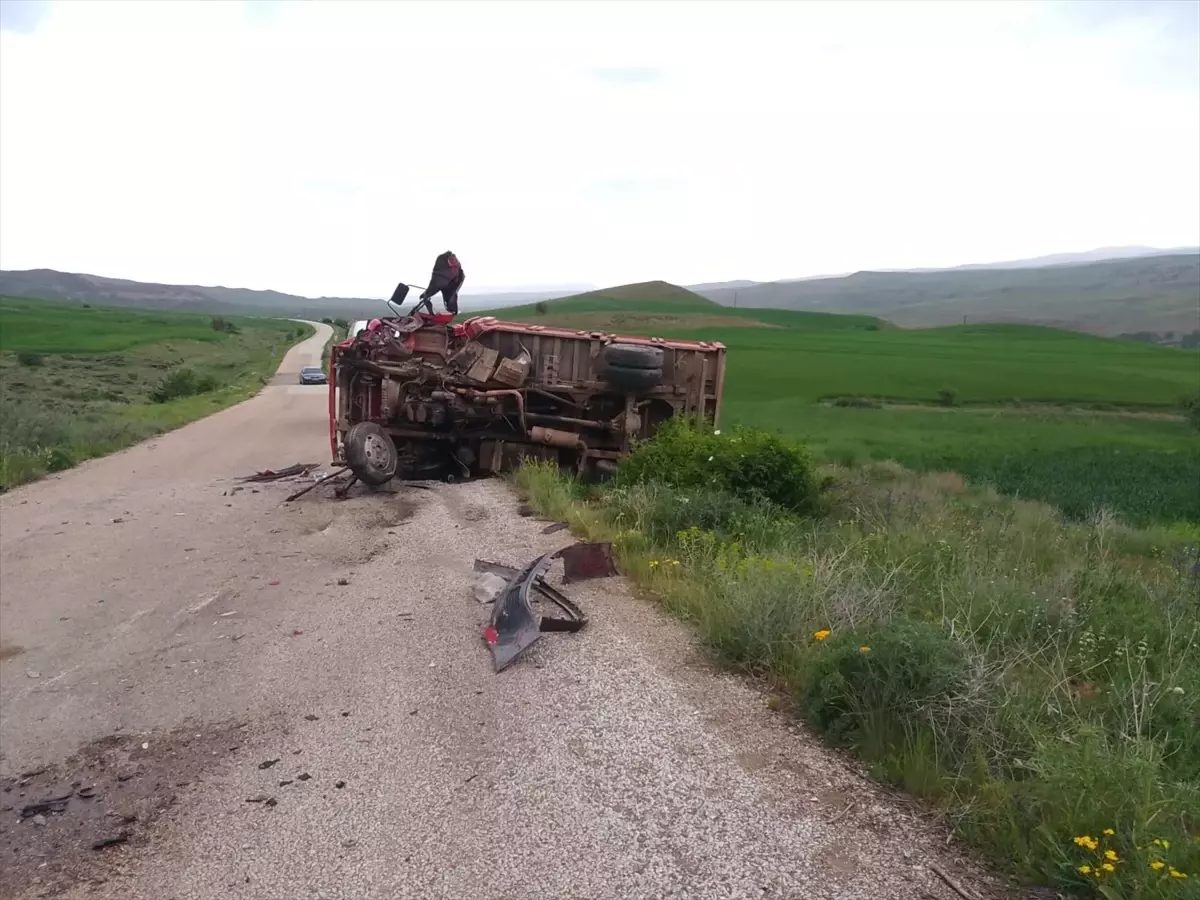 M.Ö. (34) idaresindeki 58 ES 826 plakalı kamyon ile E.Ş. (39) yönetimindeki 38 NY 104 plakalı otomobil, Karakuz köyü yakınlarında çarpıştı. Çarpışmanın etkisiyle kamyon devrildi.