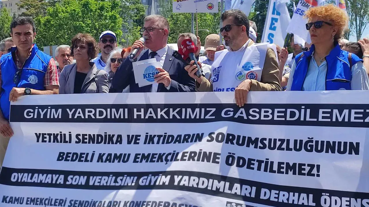 KESK Eş Genel Başkanı Ahmet Karagöz, Bakanlık önünde yaptığı açıklamada, Toplu İş Sözleşmesi (TİS) hükümlerinde yer alan koruyucu giyim yardımının, uluslararası anlaşmalar ve İş Sağlığı Güvenliği Mevzuatı gereğince Kamu iktisadi teşebbüslerinde (KİT) çalışan teknik personele verilmek zorunda olduğunu ifade etti. “Ancak Memur-Sen, bu hakkı sanki kendi kazanımıymış gibi lanse etmekte, daha da kötüsü bu yardımı kurum yöneticileri ile birlikte keyfi biçimde dağıtarak, adeta bir “rüşvet” aracı haline getirmektedir. Şimdi de bu hukuksuz uygulamanın bedeli kamu emekçilerine yüklenmek istenmektedir. Bu durum asla kabul edilemez!” ifadelerini kullanan Karagöz, “Bu ödemelerin muhatabı; TİS’e imza atan yandaş konfederasyon Memur-Sen’in yöneticileri ve kurumların yöneticileridir. Bedel ödemesi gerekenler kamu emekçileri değil, bu hatalı uygulamalara imza atanlardır” sözlerini sarf etti.