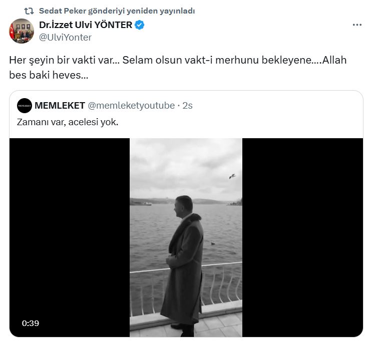 Peker, X hesabından konuya ilişkin paylaşılan bir gönderiyi yeniden paylaştı. Söz konusu paylaşım şöyle: