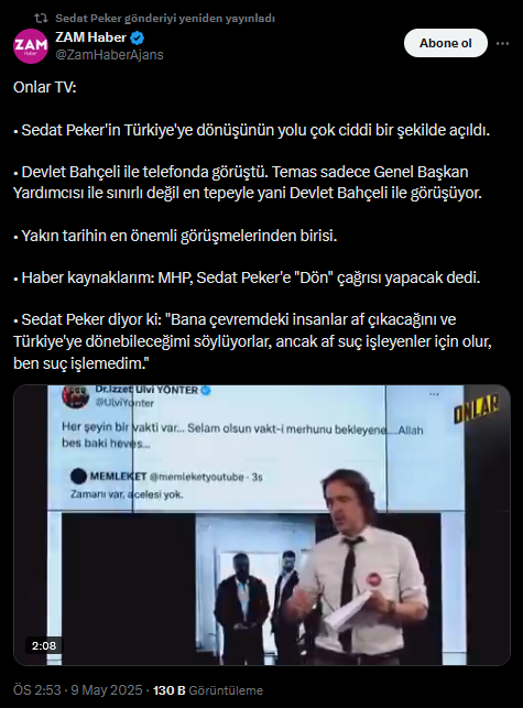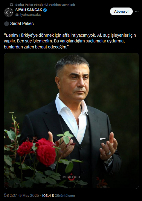 Son olarak Sedat Peker’in hakkında çıkarılacak bir af ile Türkiye’ye dönüş yolunun açılacağı ve gerçi döneceği iddia edilmişti.