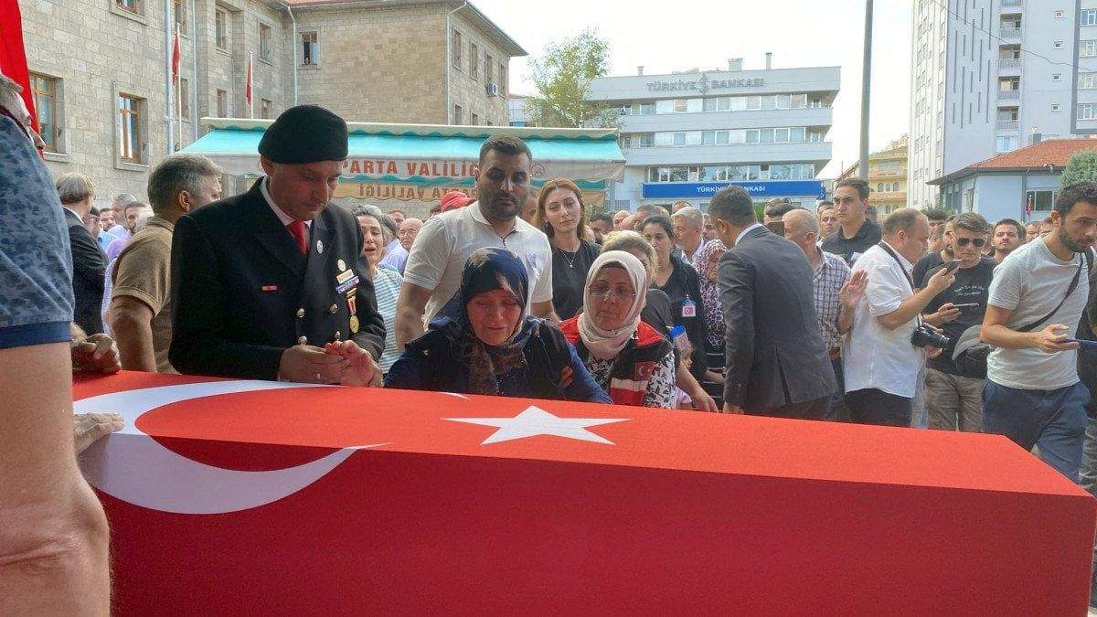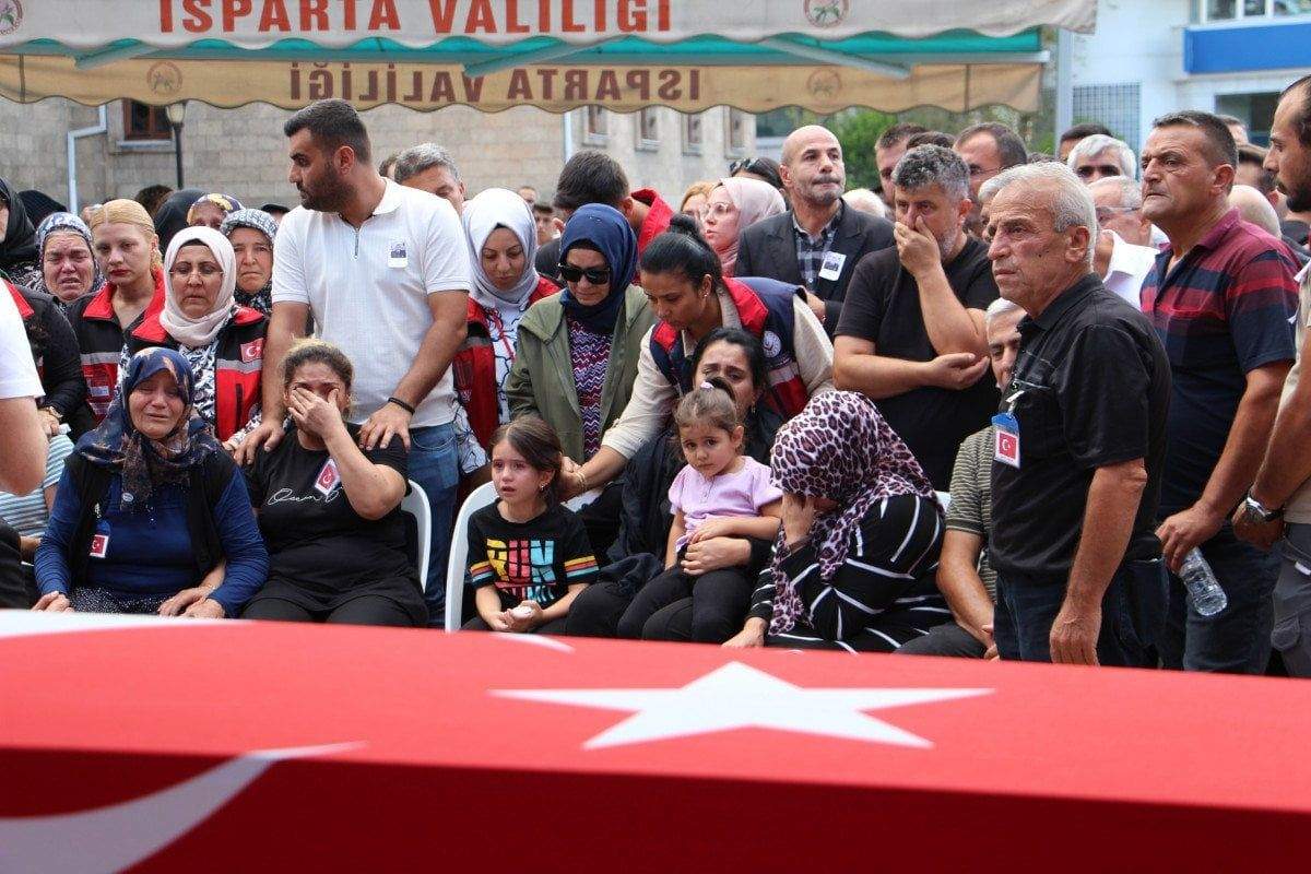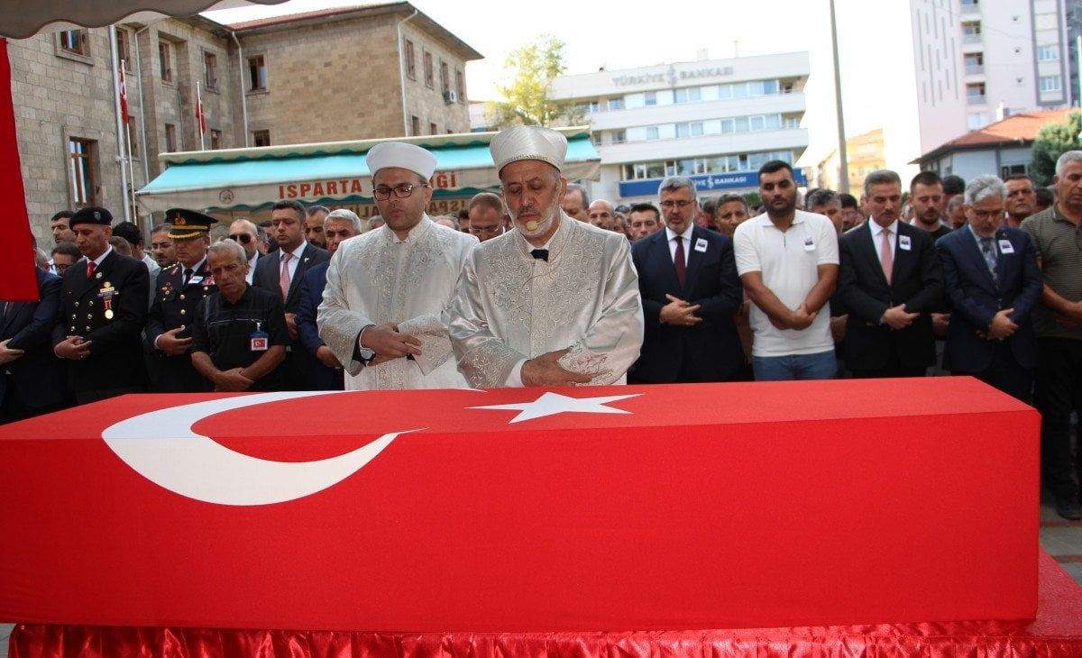 Isparta Şehir Hastanesi morguna konulan şehidin Türk bayrağına sarılı tabutu daha sonra tören için 15 Temmuz Cumhuriyet ve Demokrasi Meydanı’na götürüldü.