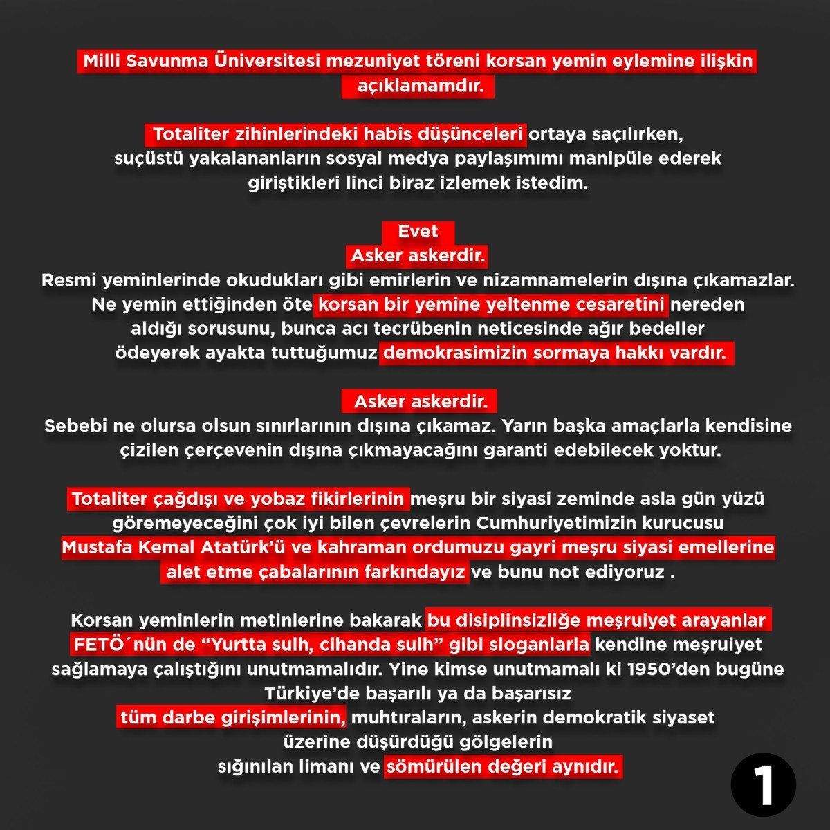 Milli Savunma Üniversitesi mezuniyet töreni korsan yemin eylemine ilişkin açıklamamdır.