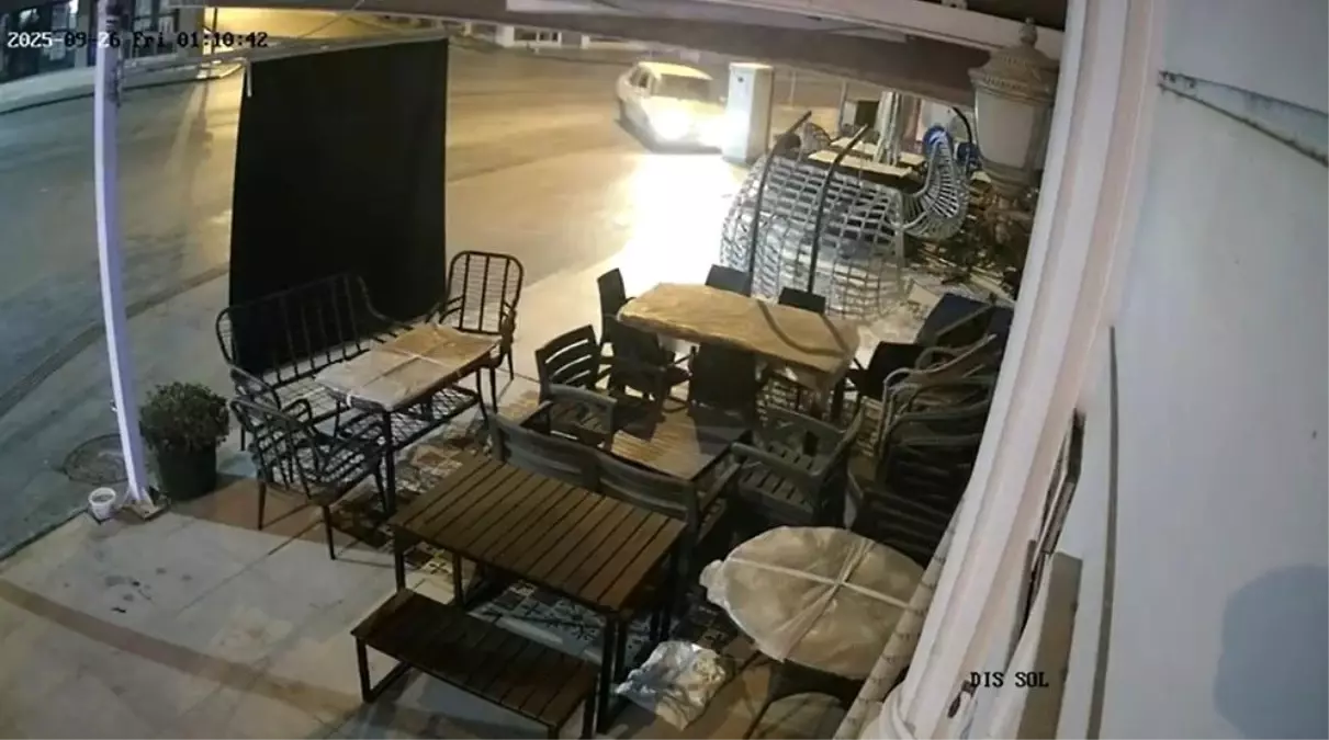 Antalya’nın Serik ilçesinde internet dağıtım panosuna çarpan otomobil, bir iş yerinin önündeki masa ve sandalyelere de zarar verdi. Sürücü olay yerinden uzaklaşırken, kaza anı güvenlik kameralarına yansıdı.