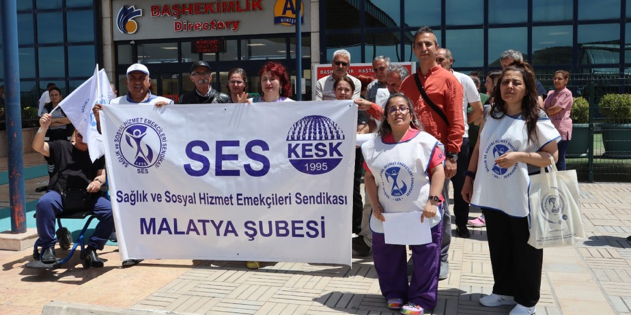 Sağlık ve Sosyal Hzimet Emekçileri Sendikası (SES) Malatya Şubesi üyeleri, sağlık emekçilerinin sıkıntılarına değinerek Turgut Özal Tıp Merkezi Başhekimliği önünde eylem yaptı.