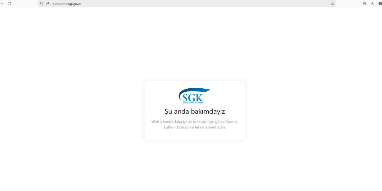 Sosyal Güvenlik Kurumu’nun (SKG) internet sayfasına erişilemiyor. Kullanıcılar SKG Web adresine girdiklerinde karşılarına şu uyarı çıktı: