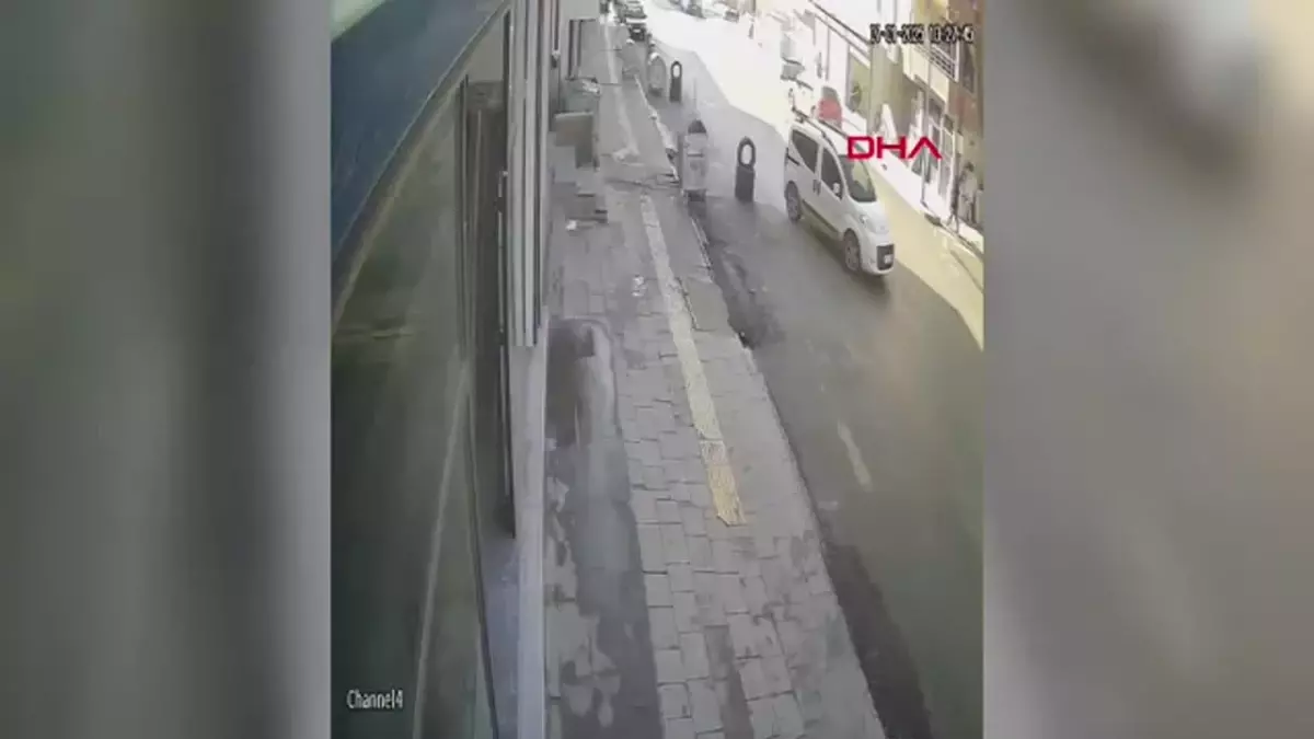 Hafif ticari aracın sürücüsü ifadesinin alınması için emniyete götürülürken, kaza bir iş yerinin güvenlik kamerasına yansıdı.