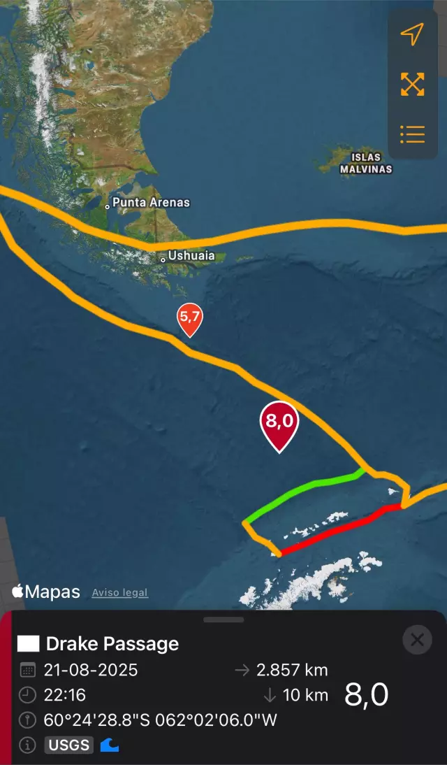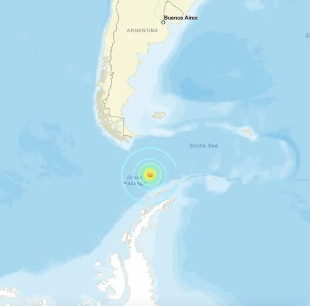 ABD Jeolojik Araştırma Merkezi (USGS), depremin merkez üssünün Şili Antarktika Yarımadası açıklarındaki Drake Geçidi olduğunu duyurdu.