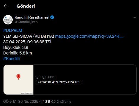 Kandilli Rasathanesi ise depremin boyutunu 3.9 olarak duyurdu.