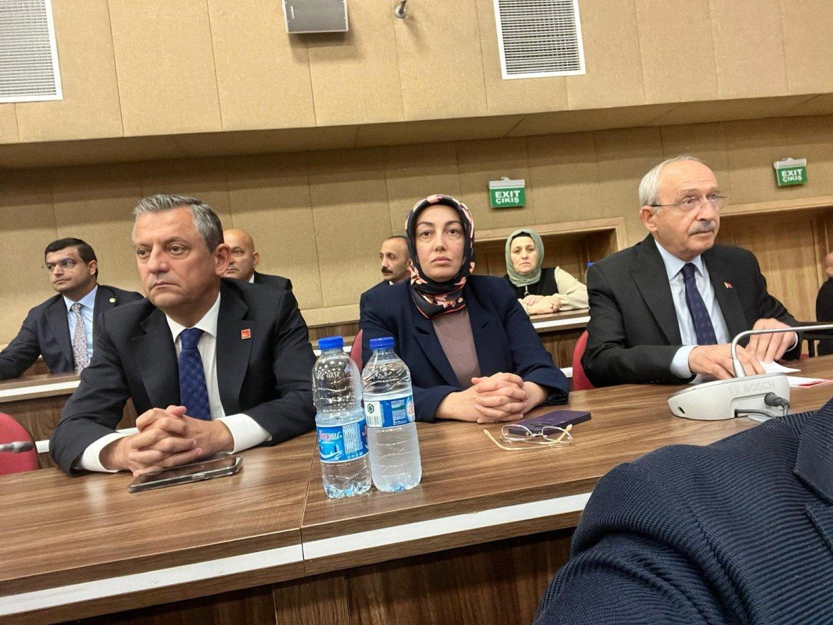 Mahkeme salonundan gelen ilk fotoğrafta Özgür Özel ve Kemal Kılıçdaroğlu’nun Sinan Ateş eşi Ayşe Ateş’in yan yana olduğu görüldü.