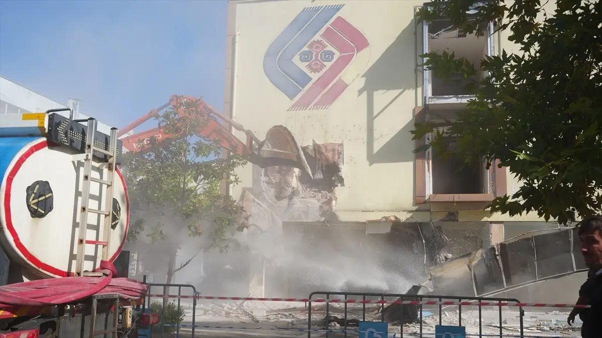 Atatürk Caddesi’nde bulunan belediye oteli ve dükkanların bulunduğu binada da tehlike arz ettiği için yıkım çalışması başlatıldı.