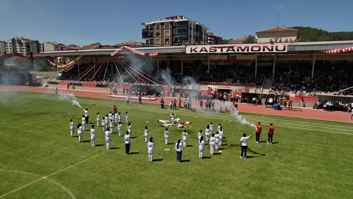 Hüseyin Akbaş Spor Salonu’nda saygı duruşunda bulunulması ve İstiklal Marşı’nın okunmasıyla başlayan törende, öğrenciler cimnastik, judo ve tekvando ile halk oyunları gösterileri sundu.
