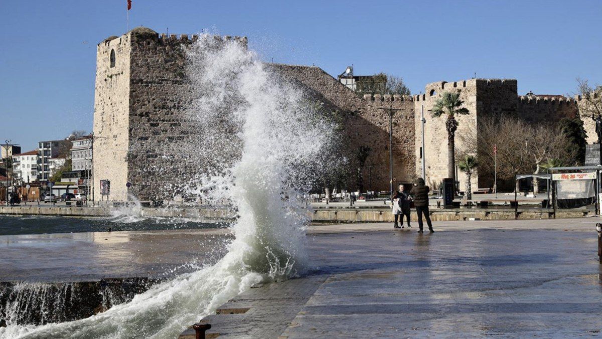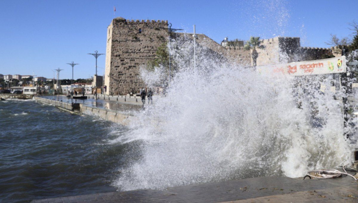 Saatteki hızı 35 kilometreye ulaşan rüzgar kentin sahilinde etkili oldu.