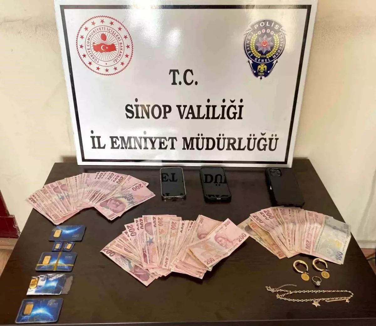Sinop’un Erfelek ilçesinde sahte altın dolandırıcılığı yapan 1 şüpheli, İlçe Emniyet Müdürlüğü ekiplerince yakalandı. İl merkezinde de benzer dolandırıcılık olaylarının yaşandığının belirlenmesi üzerine, Asayiş Şube Müdürlüğü ekiplerince başlatılan çalışmalar kapsamında 3 şüpheli Samsun’un Atakum ilçesinde yakalandı. Şüphelilerin üzerlerinde ve araçlarında yapılan aramalarda; 4 adet 5 gram sahte altın, 2 adet 1 gram sahte altın, 40 bin 200 TL nakit para, 600 dolar, 3 adet ziynet eşyası ve 5 cep telefonu ele geçirildi.