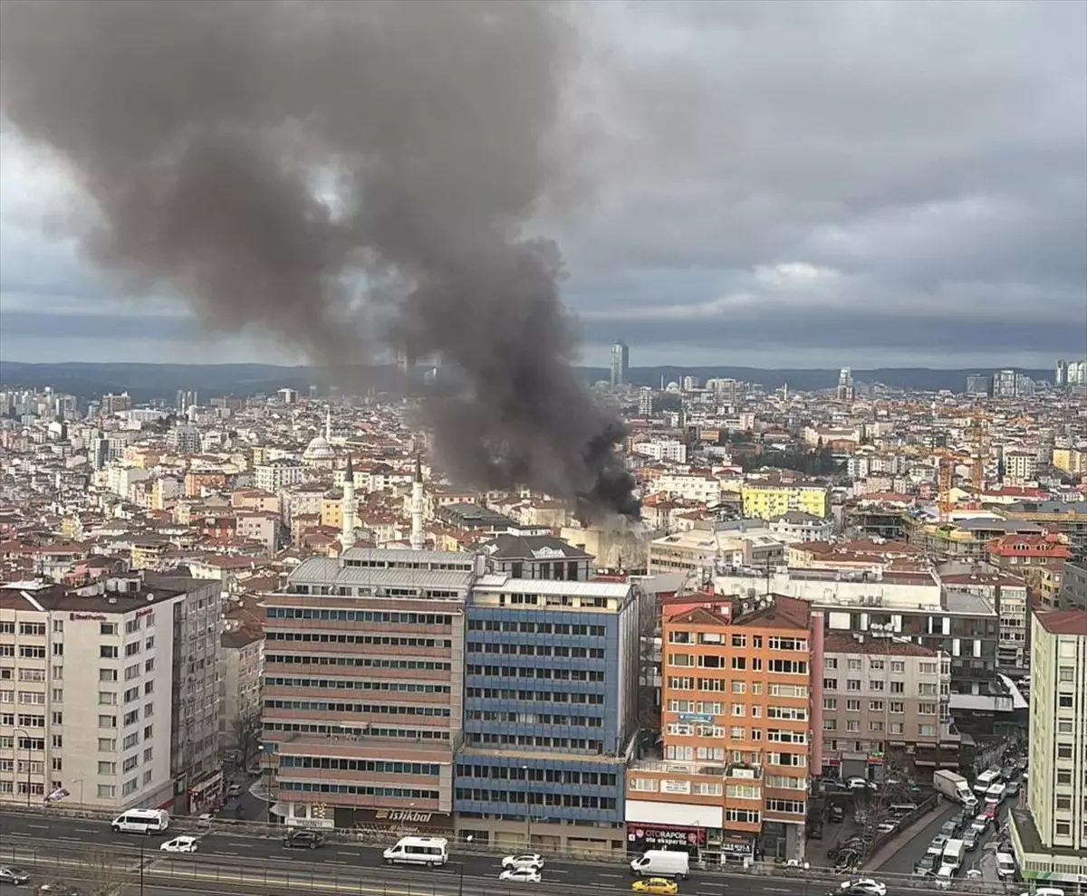 Şişli’de, yıkım işlemi yapılan 4 katlı binanın çatısında çıkan yangın söndürülmeye çalışılıyor.