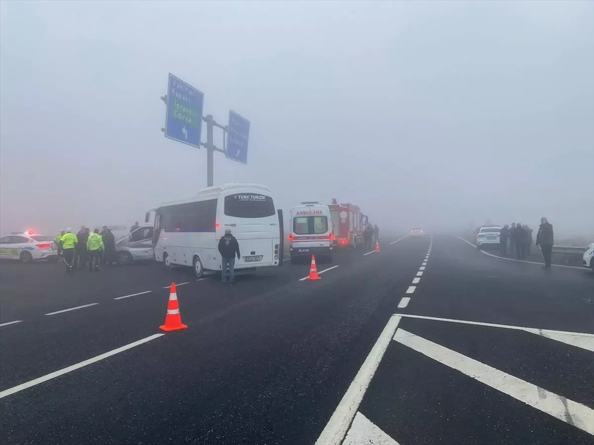 Tekirdağ'da sis nedeniyle meydana gelen kazada 4 kişi yaralandı, hastaneye kaldırıldılar.