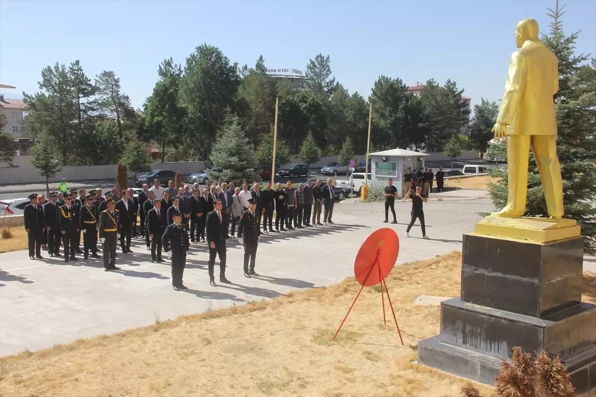 Ulaş Hükümet Konağı önündeki törende, Kaymakam Esad Mücahit Eskimez ve Belediye Başkanı Turan İlbey, Atatürk Anıtı’na çelenk sundu.