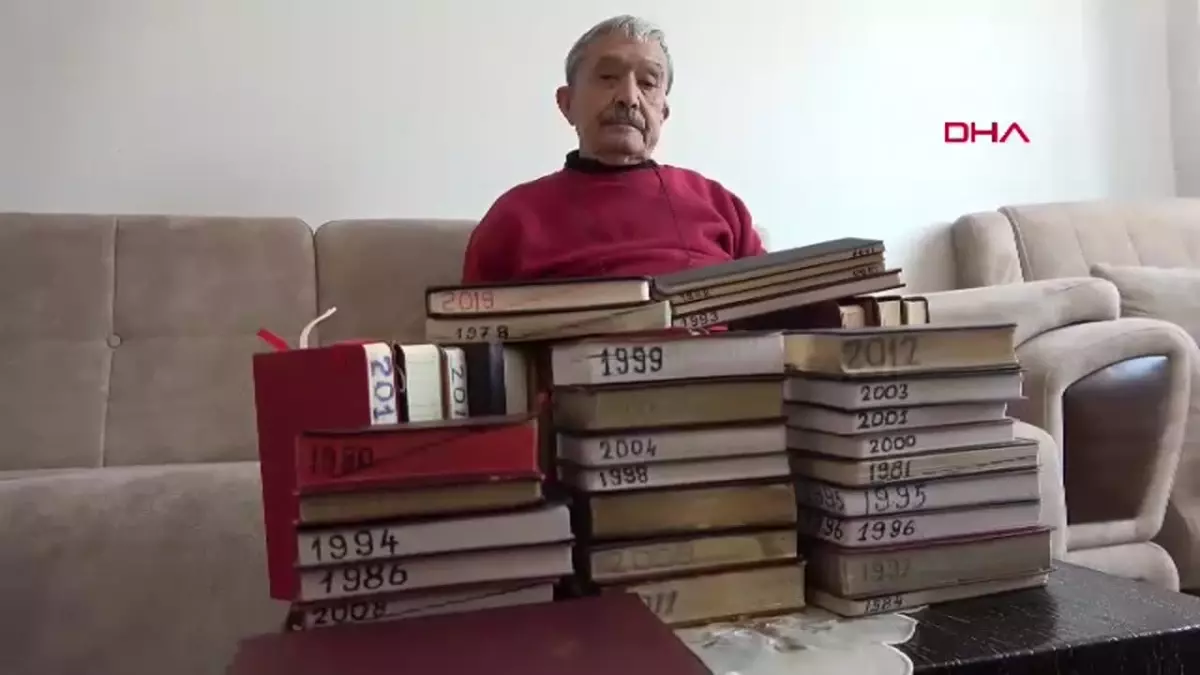 SİVAS’ta, memur emeklisi Metin Karaçoban (80), 1978 yılından itibaren başladığı günlük tutma işini tutku haline getirdi. 46 yıldır, dünyada, Türkiye’de ve kendi çevresinde olup bitenleri gün gün yazmaya başladı. Günlük tutma alışkanlığını halin aralıksız devam ettiren Karaçoban, Yazı yazmayı çok seviyorum. Söz bitiyor, yazı kalıyor. Başlangıçta yazarken sıkılıyordum ama seneler geçtikçe bu bende tiryakilik haline geldi dedi.