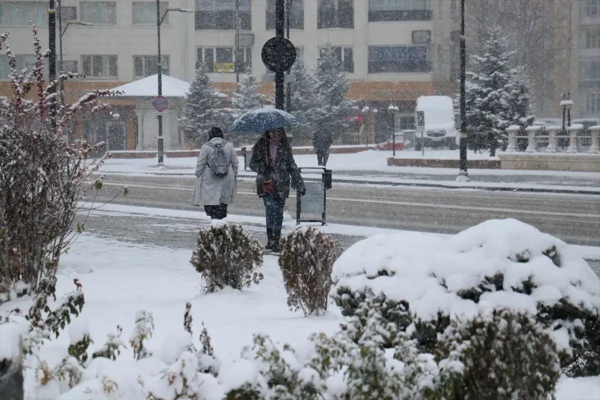 İl merkezinde de kar yağışı aralıklarla devam ediyor.