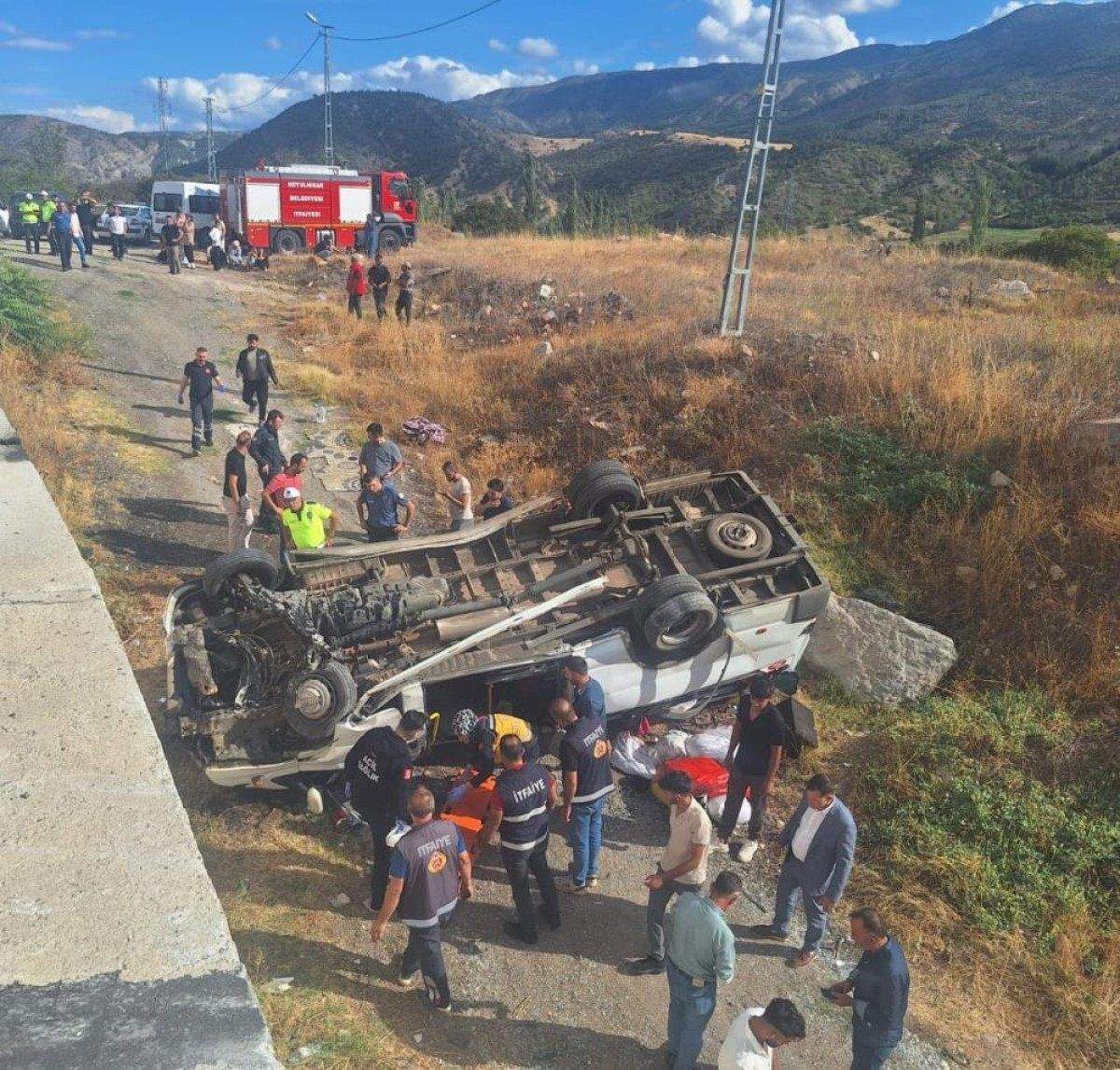 D-100 karayolu üzerinde, Koyulhisar ilçesi üç yol kavşağında meydana gelen kazada, Ordu’dan Diyarbakır’a fındık işçilerini taşıyan 21 TJ 349 plakalı Ford minibüs, sürücüsü T.A.’nın direksiyon kontrolünü kaybetmesiyle şarampole devrildi.