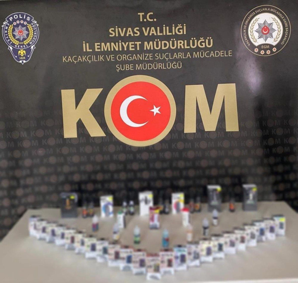 Sivas Cumhuriyet Başsavcılığı’nın koordinasyonuyla iki ayrı iş yerinde yapılan baskınlarda; 67 adet elektronik sigara, 16 adet elektronik sigara likiti, 80 adet elektronik sigara coili ve 600 adet elektronik sigara tütünü ele geçirildi.